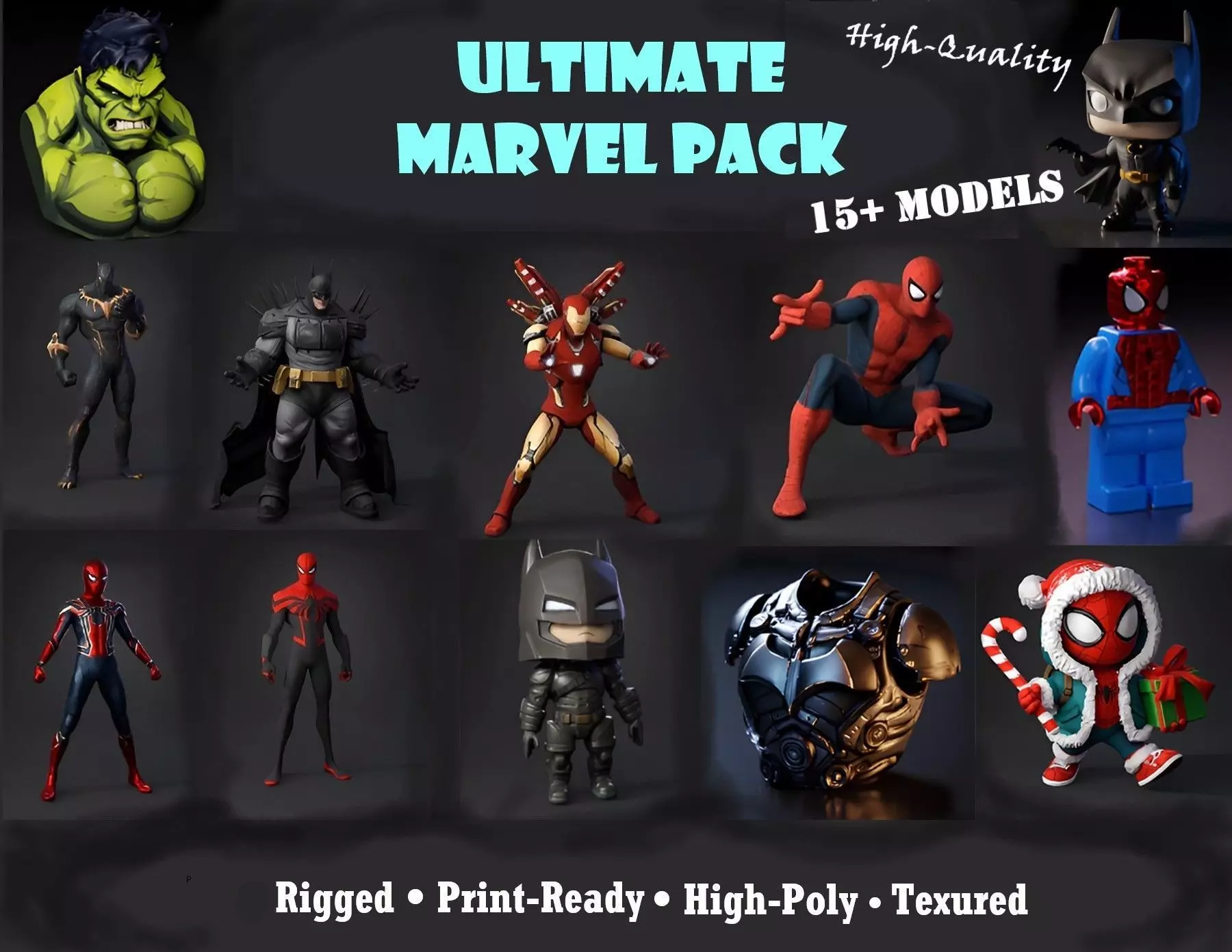 Elevate your projects with this professionally crafted collection of 15+ high-quality superhero 3D models, designed to meet the demands of creators, studios, and collectors alike. This pack combines visual excellence with technical precision, making it ideal for rendering, animation, and 3D printing workflows.Each model is meticulously developed with a focus on detail, realism, and performance, ensuring a premium look across all use cases—from cinematic scenes to game-ready assets. Models Included: