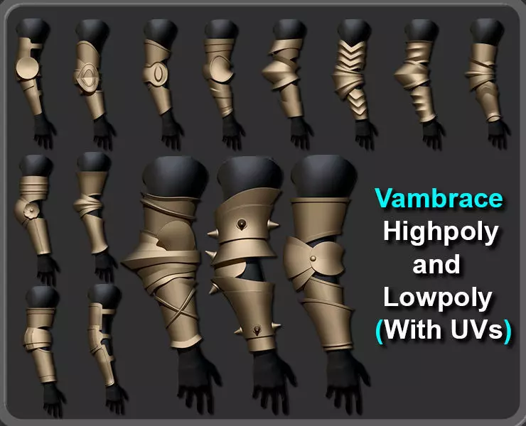 Vambrace Highpoly and Lowpoly With UVs Vol 2