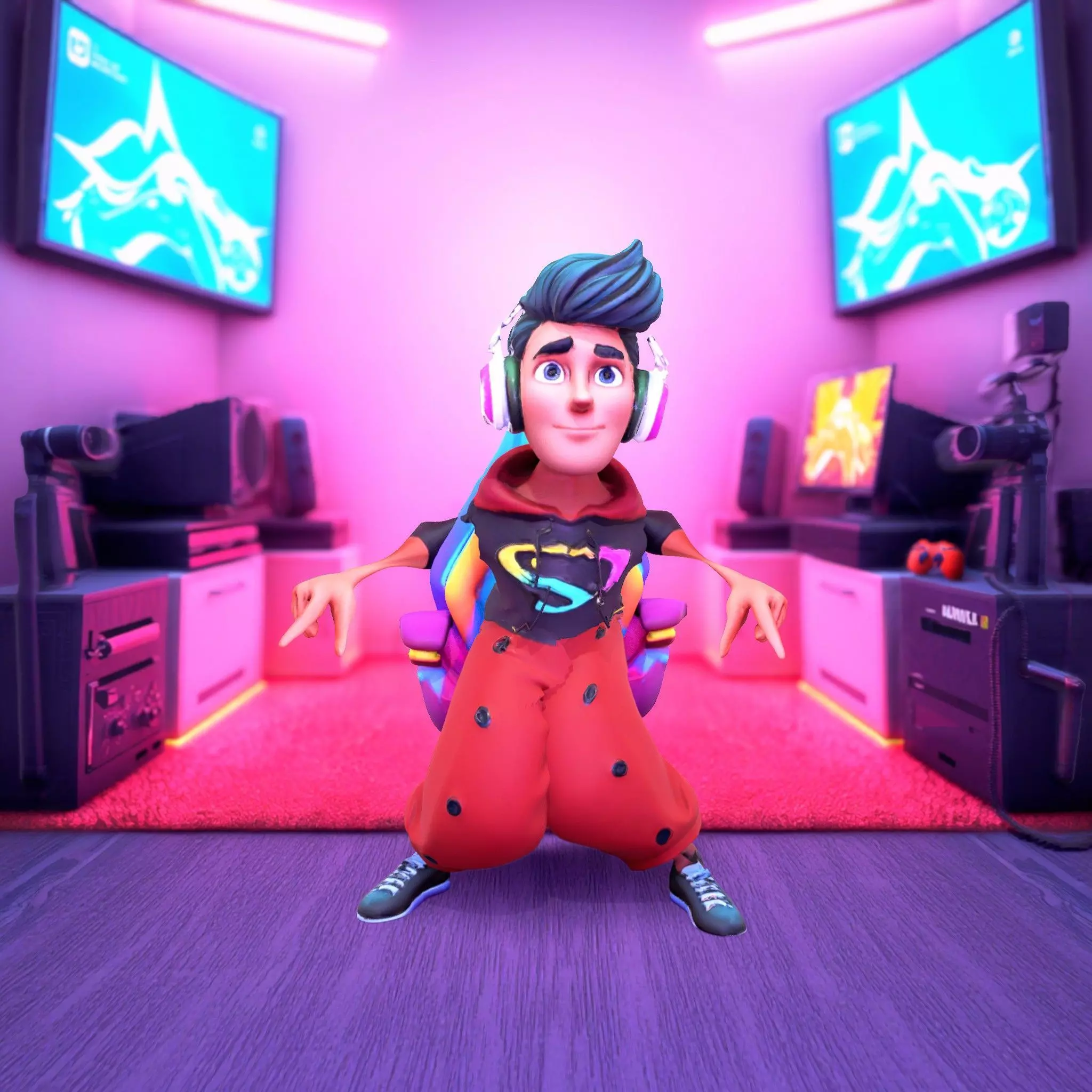 This vibrant gamer character model is designed to bring an energetic presence to any virtual setting. Featuring expressive facial characteristics and a unique style, it's perfect for gaming, advertising, and animation projects.