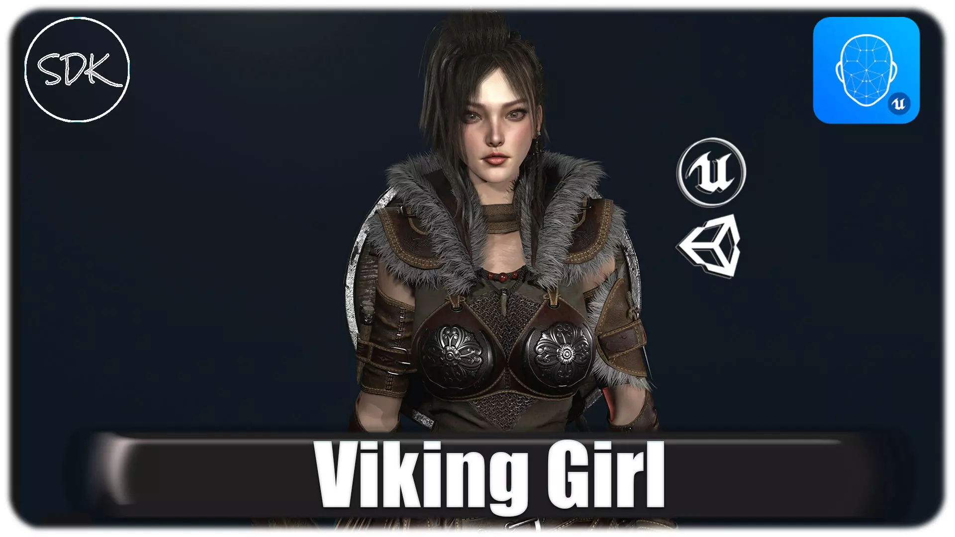 UnrealUpdate 1.Added strands of hair on the forehead.Improved hair material.New face texture, prettier in my opinion))New eyes, more realistic.Added 9 tattoos that can be turned on, off, change color, combined.Features:Blendshapes / Morph Targets / Facial ExpressionsWind simulation for ClothModular clothesEpic Skeleton 3rd person character animations are includedChange eye and hair color and body and headRigged: (Yes)Rigged to Epic skeleton: (Yes)If rigged to the Epic skeleton, IK bones are included: (Yes)Animation types (Root Motion/In-place): retargetNumber of characters: 1Vertex counts of characters: 92317Number of Materials and Material Instances: 11 and 6Number of Textures: 52Texture Resolutions: 4096x4096Documentation: NoImportant/Additional Notes: There is a transparency map in the material of the body and clothes. So that in movement one garment does not pass through the other and through the body.The model has additional bones joint_Shield1, Joint_Axe1, joint_Bottom_Belt2_1, joint_Bottom_Belt2_2, joint_Bottom_Belt2_3, joint_Bottom_Belt3_1, joint_Bottom_Belt3_2, joint_Bottom_Belt3_3