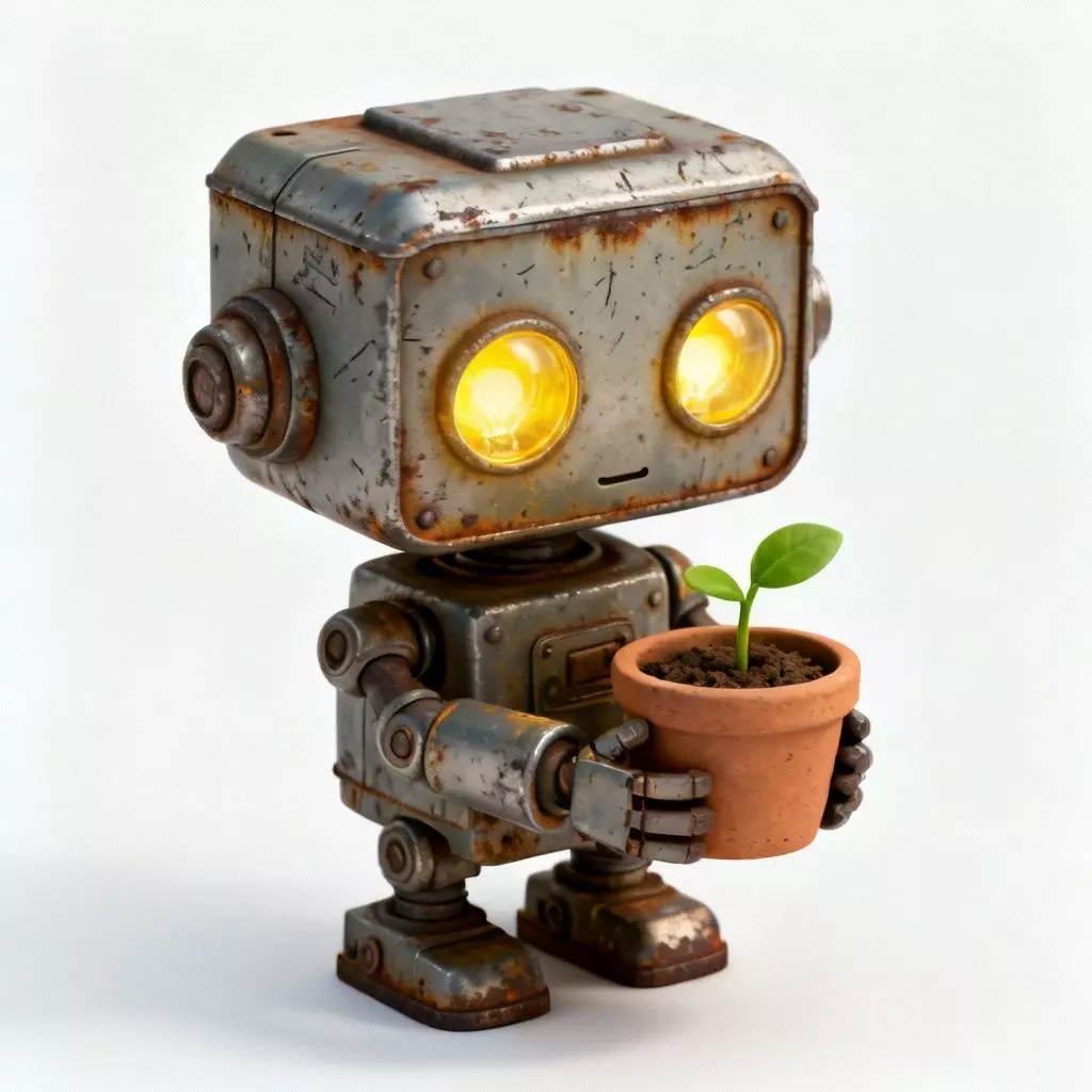 Vintage Rusty Robot Gardener 3D Model – Cute Eco-Bot Mascot