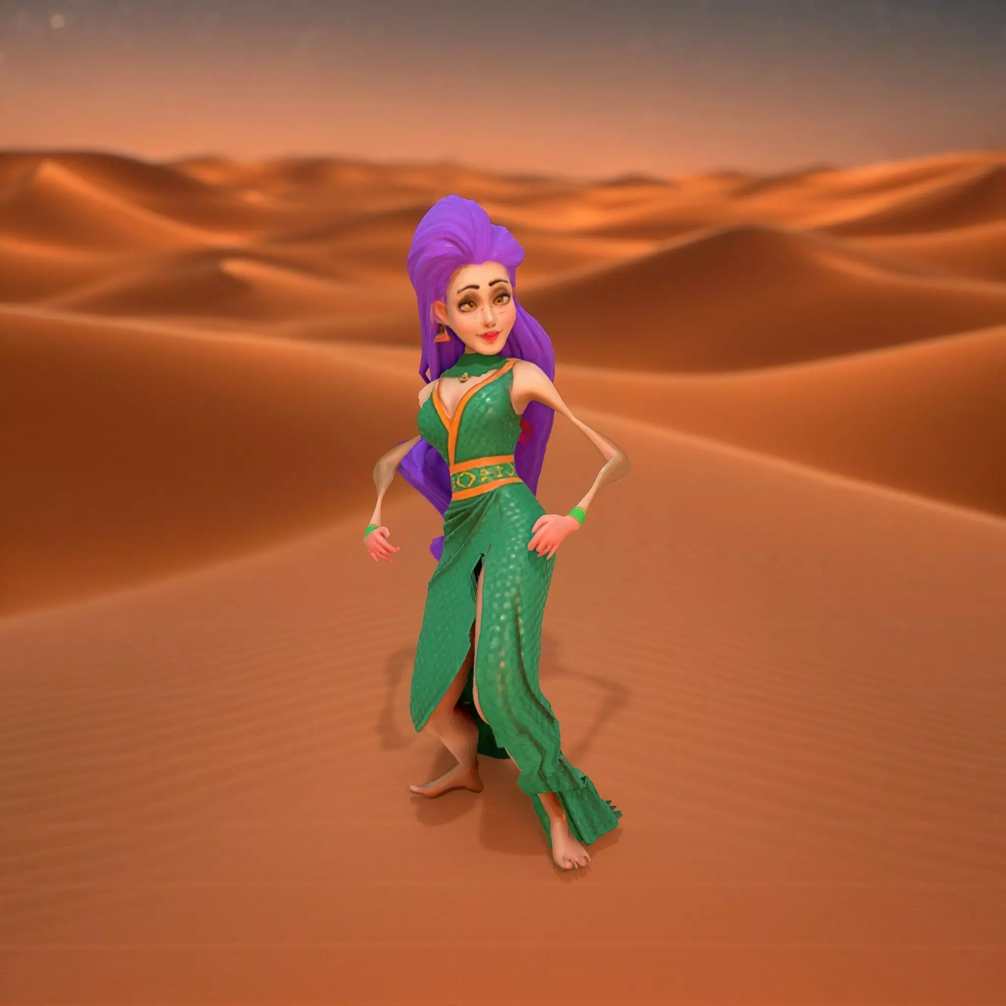 This 3D model showcases a graceful character with vibrant violet hair and an elegant green dress, ideal for animated films, fantasy games, and virtual productions. Each model has 3 levels of detail: low-poly (1000 triangles for mobile), mid-poly (10,000 triangles for environments), and high-poly (100,000 triangles), making it versatile for production rendering and game engines like Unity and Unreal. The PBR textures, including Diffuse, NormalMap, and reflection/roughness/metallic, ensure high-quality visuals across modern rendering engines. All models are unwrapped accurately with no overlapping UVs, and textures are 4096x4096 in size. Suitable for cinematic scenes, game characters, or interactive presentations. If you enjoy this model, please like and leave a comment!