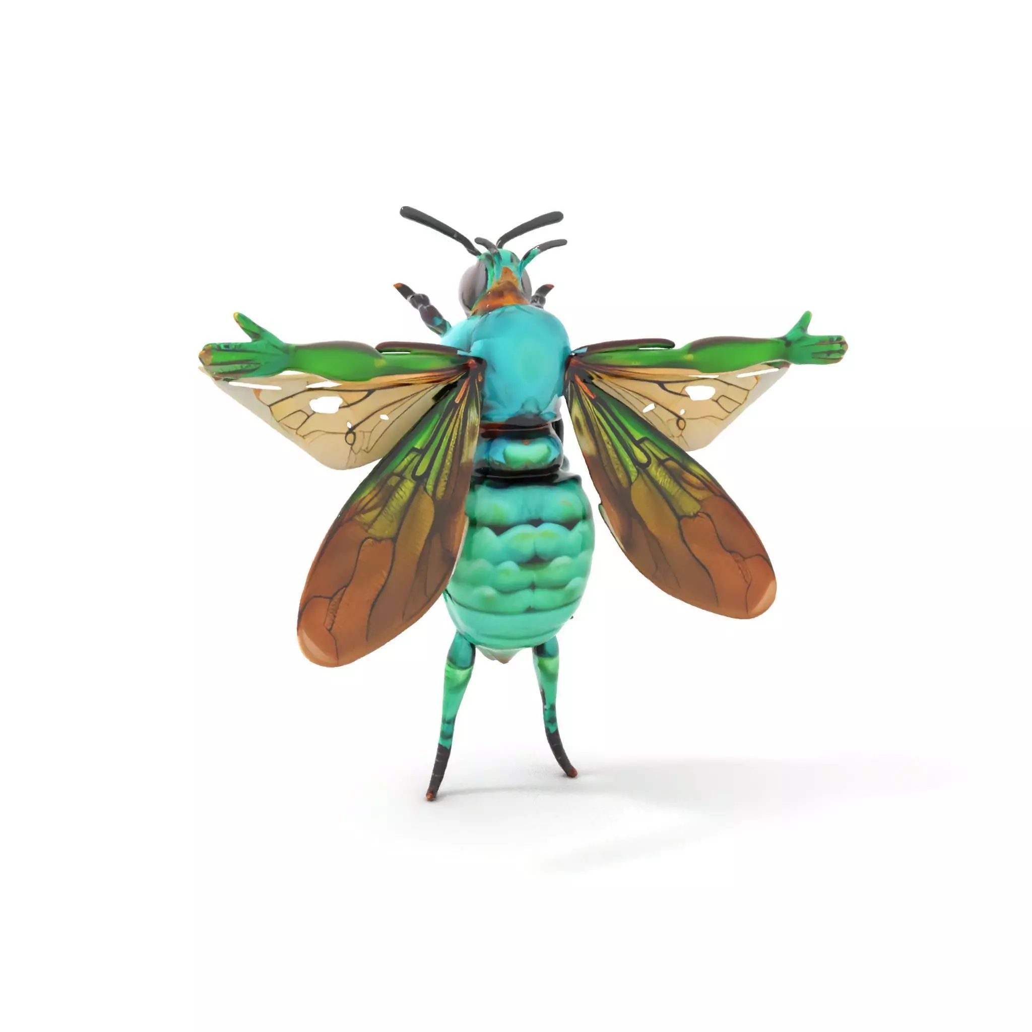 This Vivid Emerald Insect model pack features a unique hybrid creature, combining the elements of an insect with human arms, crafted in striking green hues. Each model has 3 levels of detail: low-poly (1000 triangles for mobile), middle-poly (10,000 triangles for environment), and high-poly (100,000 triangles), which allows for the use of this model in production rendering (such as 3ds Max, Maya, Cinema4D, Blender, Vray/Corona/Cycles and all others), game engines (Unity and Unreal compatible), and interactive presentations, providing a choice of detail based on the LOD System principle. Perfect for fantasy environments, scientific visualizations, or creative animation projects. The model's textures are PBR, Diffuse, NormalMap, and reflection/roughness/metallic, suitable for any modern rendering engine. All models accurately unwrapped and have no overlapping UV. Textures are 4096*4096 in size. Please like and leave a comment if you enjoyed the model!