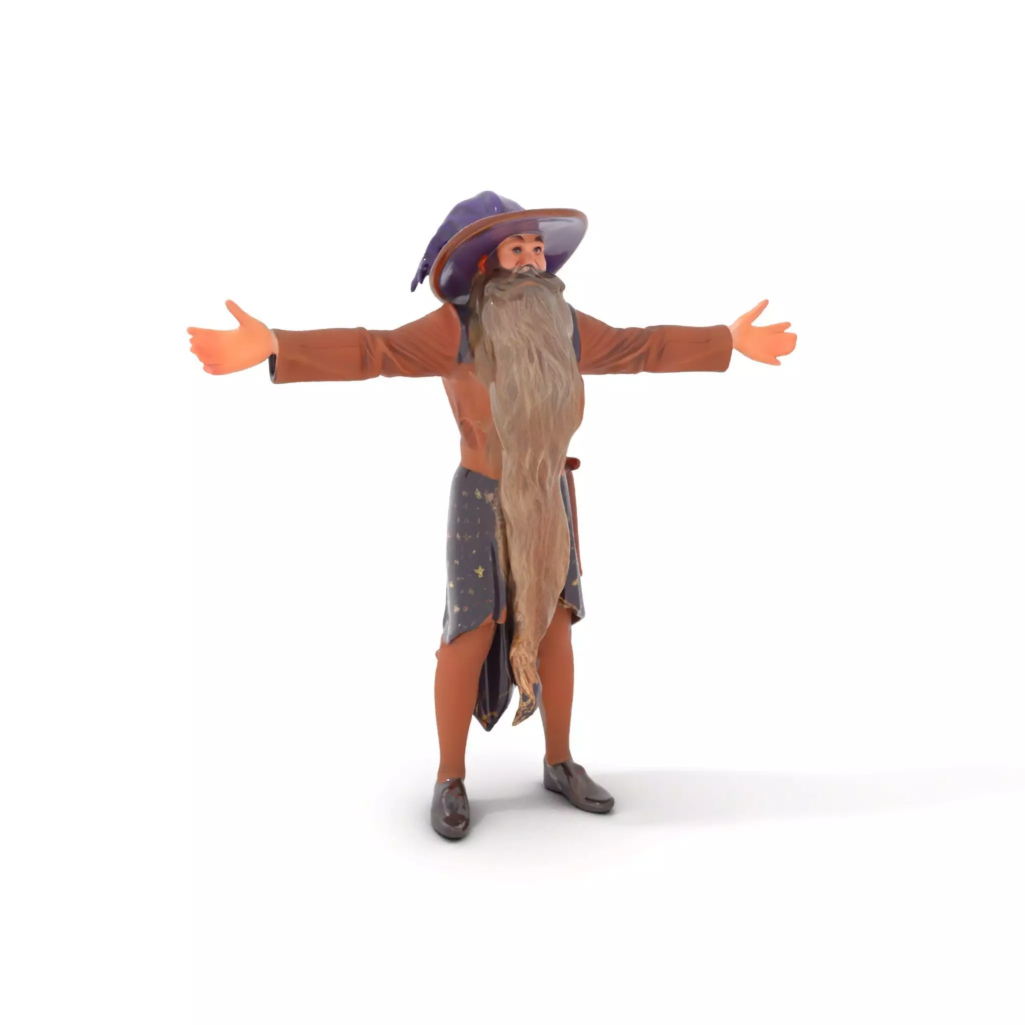This wizard character model pack includes an intricately detailed robe, hat, and long beard. Each model has 3 levels of detail: low-poly (1000 triangles for mobile), middle-poly (10,000 triangles for environment), and high-poly (100,000 triangles) levels, allowing use in production rendering (3ds Max, Maya, Cinema 4D, Blender, Vray/Corona/Cycles), game engines (Unity and Unreal), and interactive presentations with LOD System. Ideal for fantasy games, animations, or visual storytelling. PBR textures include Diffuse, NormalMap, and reflection/roughness/metallic, suitable for all modern rendering engines. All models accurately unwrapped with no overlapping UV. Textures are 4096*4096 in size. The first image is the reference used for creating the 3D model. It is important to carefully evaluate the quality of the model by examining the preview images that display the topology and polygonal mesh. These previews (WIRE and WEB 3D Preview) clearly demonstrate how accurately the model matches the original reference and how well the geometry has been executed. If you enjoy the model, please like and leave a comment.