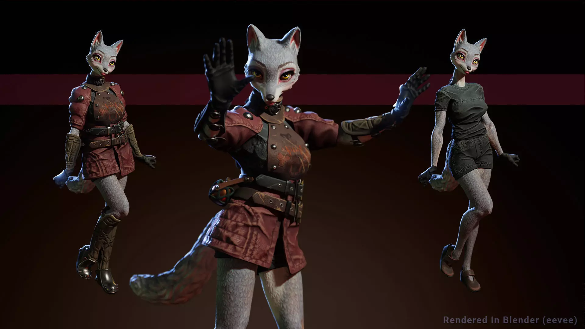 Wolf girl Low-poly 3D model