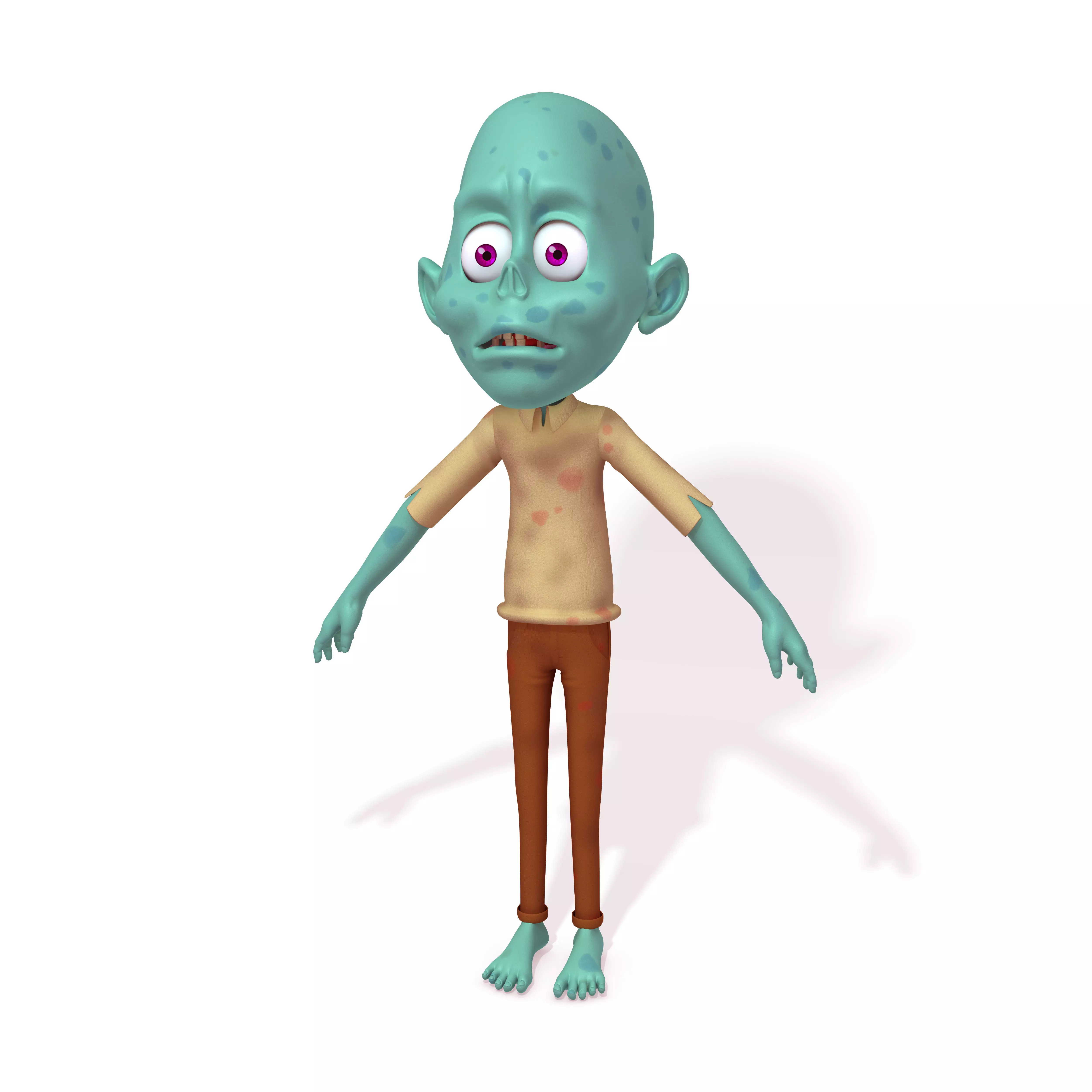 A high-quality 3D Zombie cartoon character made in Maya 2018. The model has high detail textures. This is a superb 3D model great for advertisements, feature films, presentations, games, software applications, print.