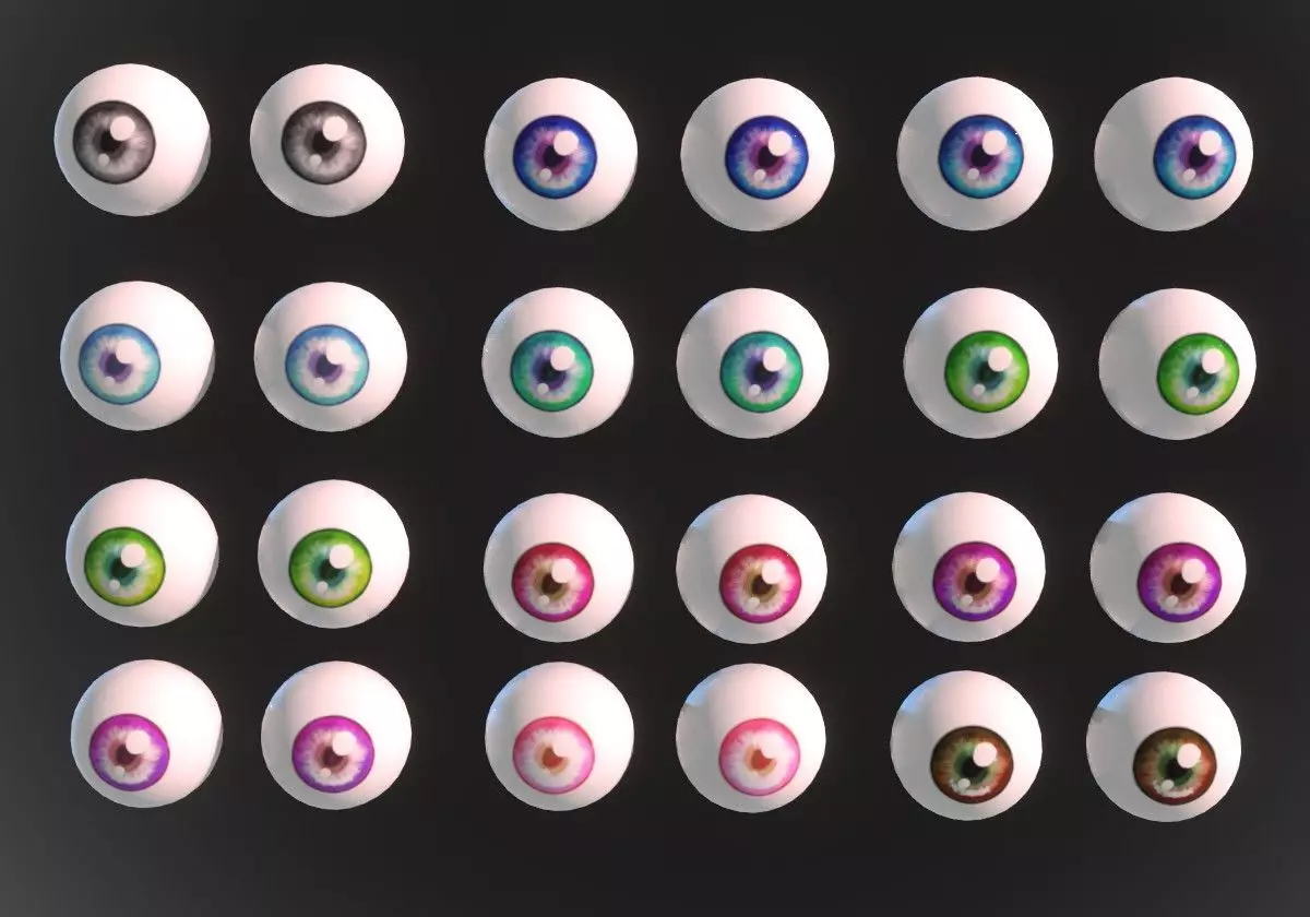 12 eyeballs pair pack Low-poly 3D model