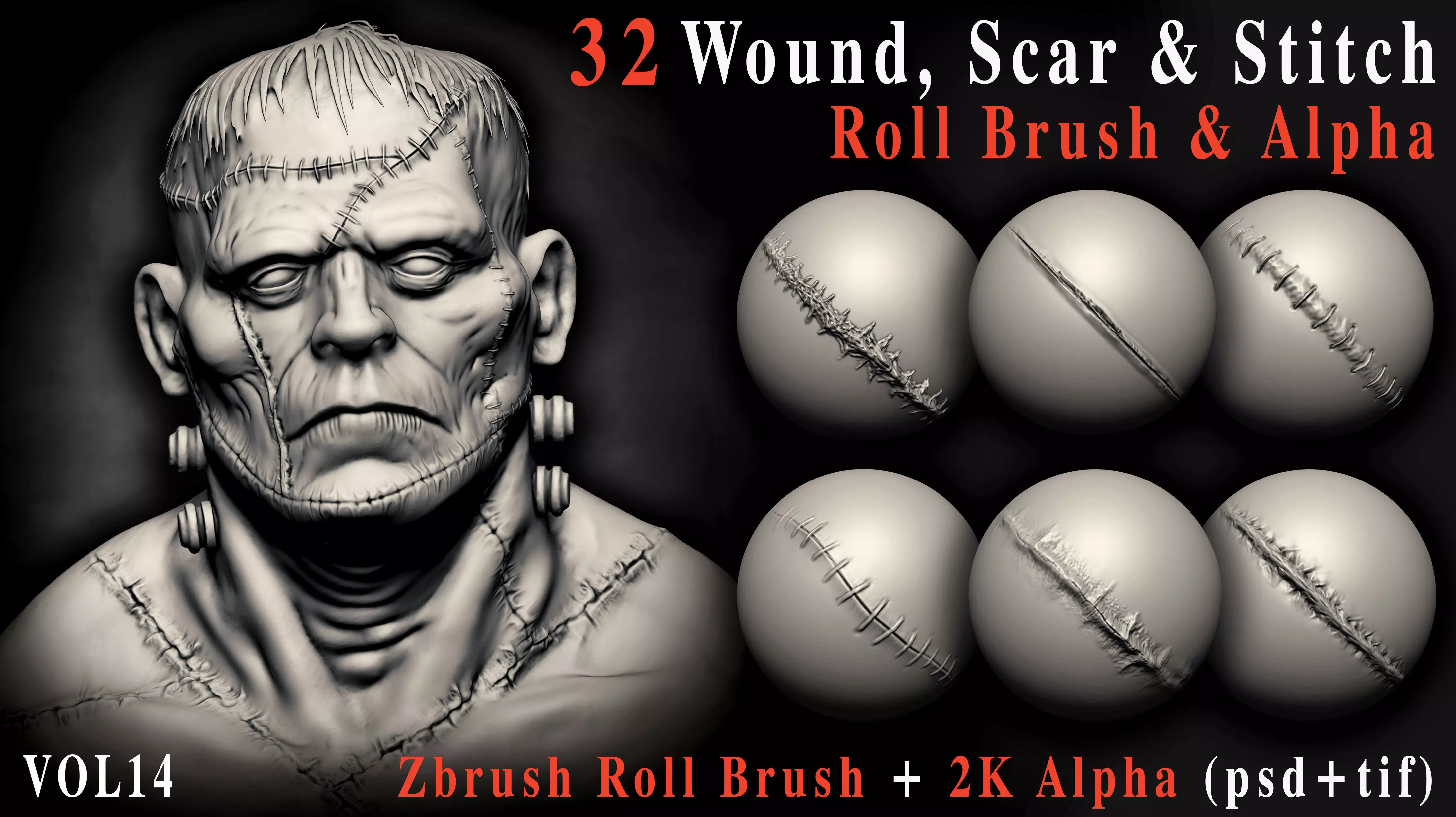 Bring depth and realism to your creature and character sculpts with this powerful set of 32 Wound, Scar & Stitch Roll Brushes and Alphas. Designed to quickly add natural-looking cuts, healed scars, stitched areas, and damaged skin, this pack is perfect for artists working on horror creatures, battle-worn characters, or cinematic storytelling details.These Roll Brushes allow you to drag and apply wounds seamlessly across your sculpt—making them ideal for long, continuous scars and stitched lines. Whether you're sculpting game assets, film characters, or concept models, this pack helps you achieve professional and believable detail in just seconds.Compatible with ZBrush and any software that supports alpha maps, these brushes give you full flexibility in your workflow.