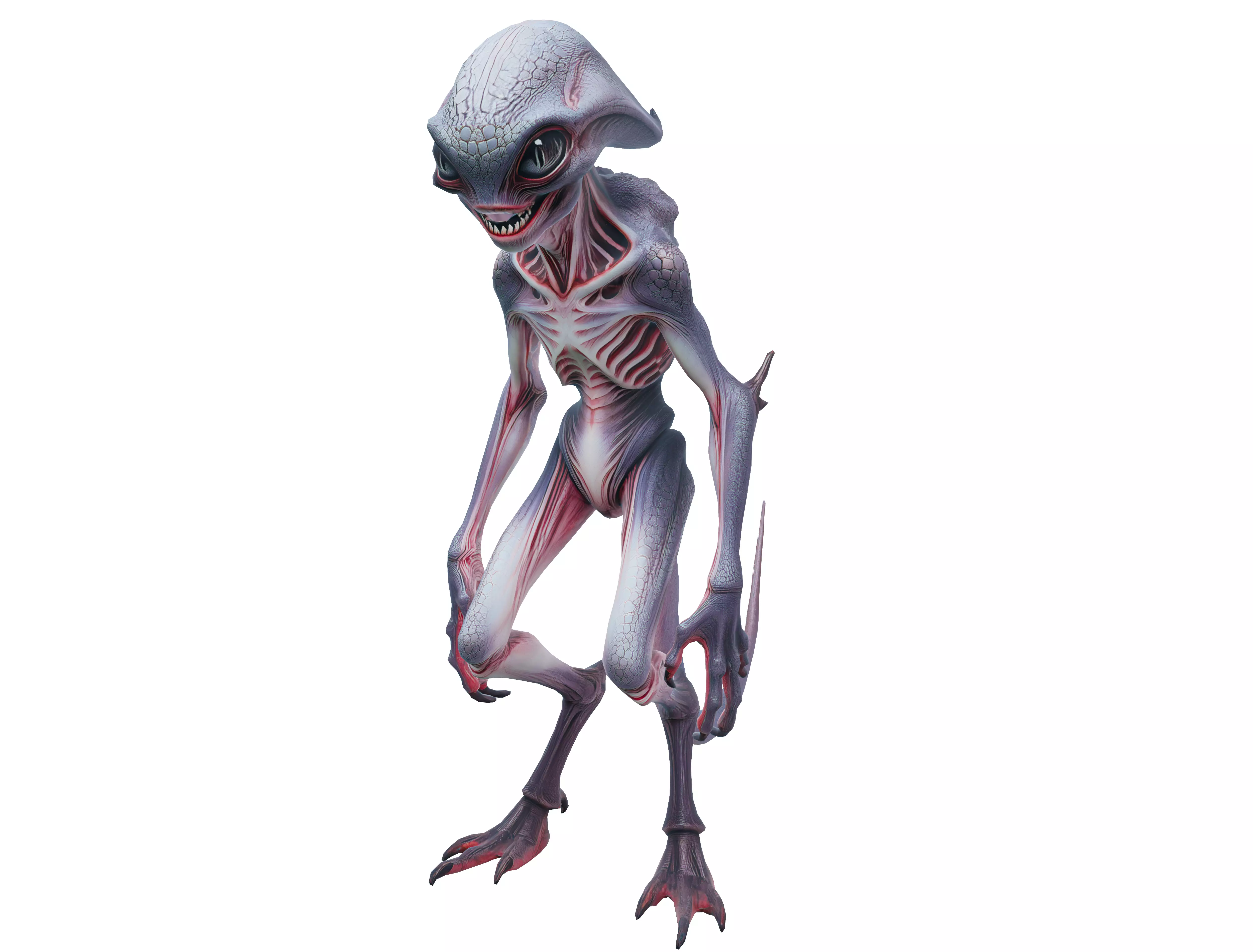 Clean quad-based topologyPBR materials (metallic sheen, subsurface for translucent slime, normal maps for details)UV unwrapped (non-overlapping)Real-world scale (adjustable, ~2.5–3m height)High poly for close-up renders + subdivision readyDetailed sculpt: acid blood veins, biomechanical tubes, sharp teeth/clawsNo plugins required