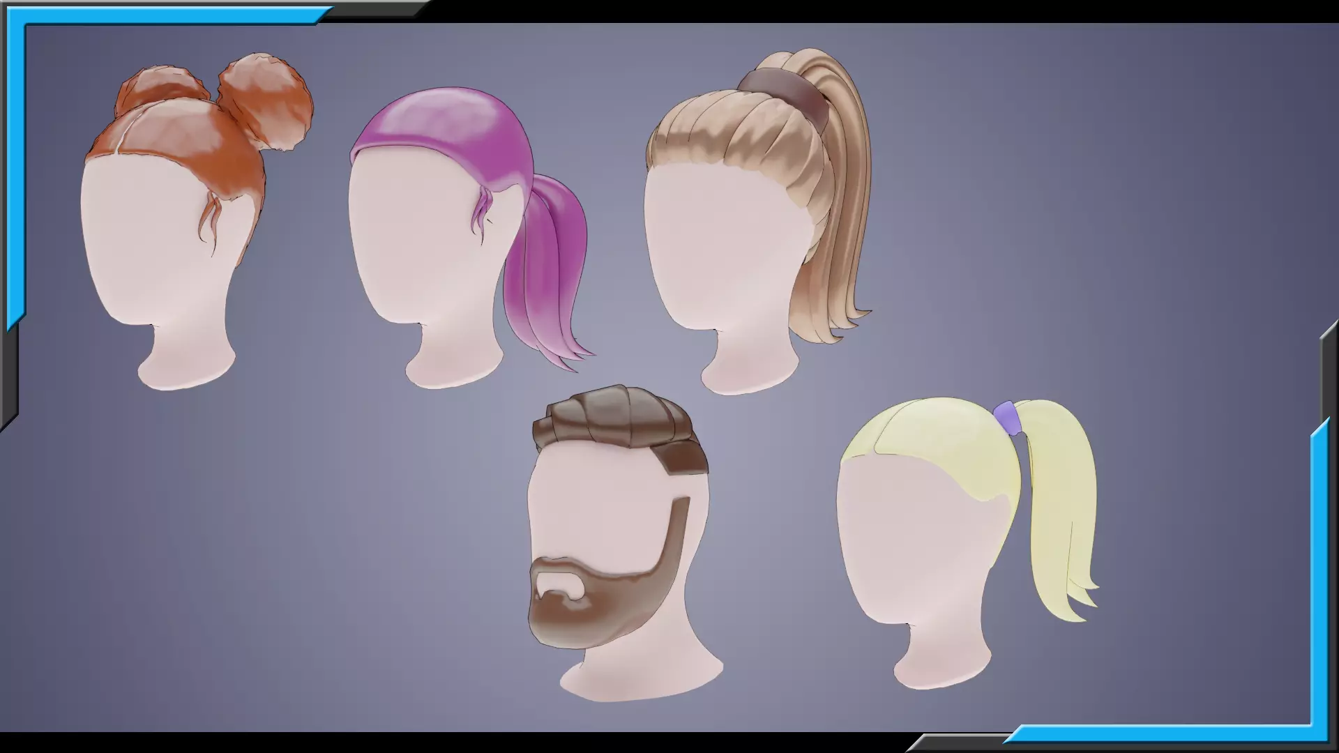 Base Stylized Haircuts 36-40 Low-poly 3D model