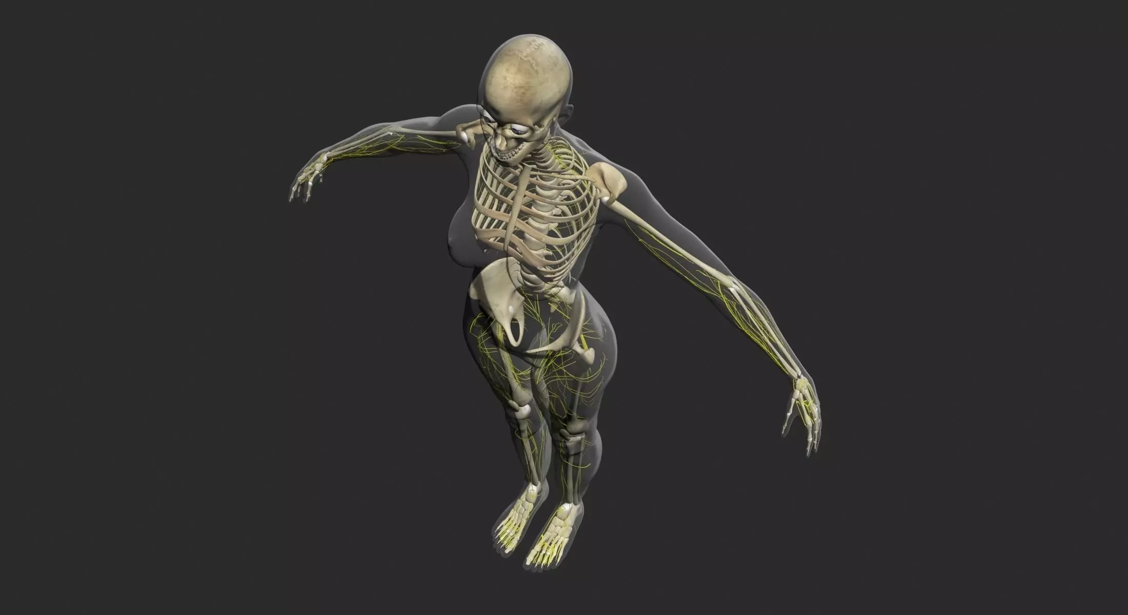 ==FEATURES==-Central Nervous System including Detailed Brain-X-Ray Shader for the Skin (Ready to render exactly as shown)-Each bone is select-able and named / grouped properly for easy organization-Real World Scale (5' 10' tall)-Displacement map for extreme detail-Clean edge-loop based topology-Light set up ready to Render-3D Studio Max compatible