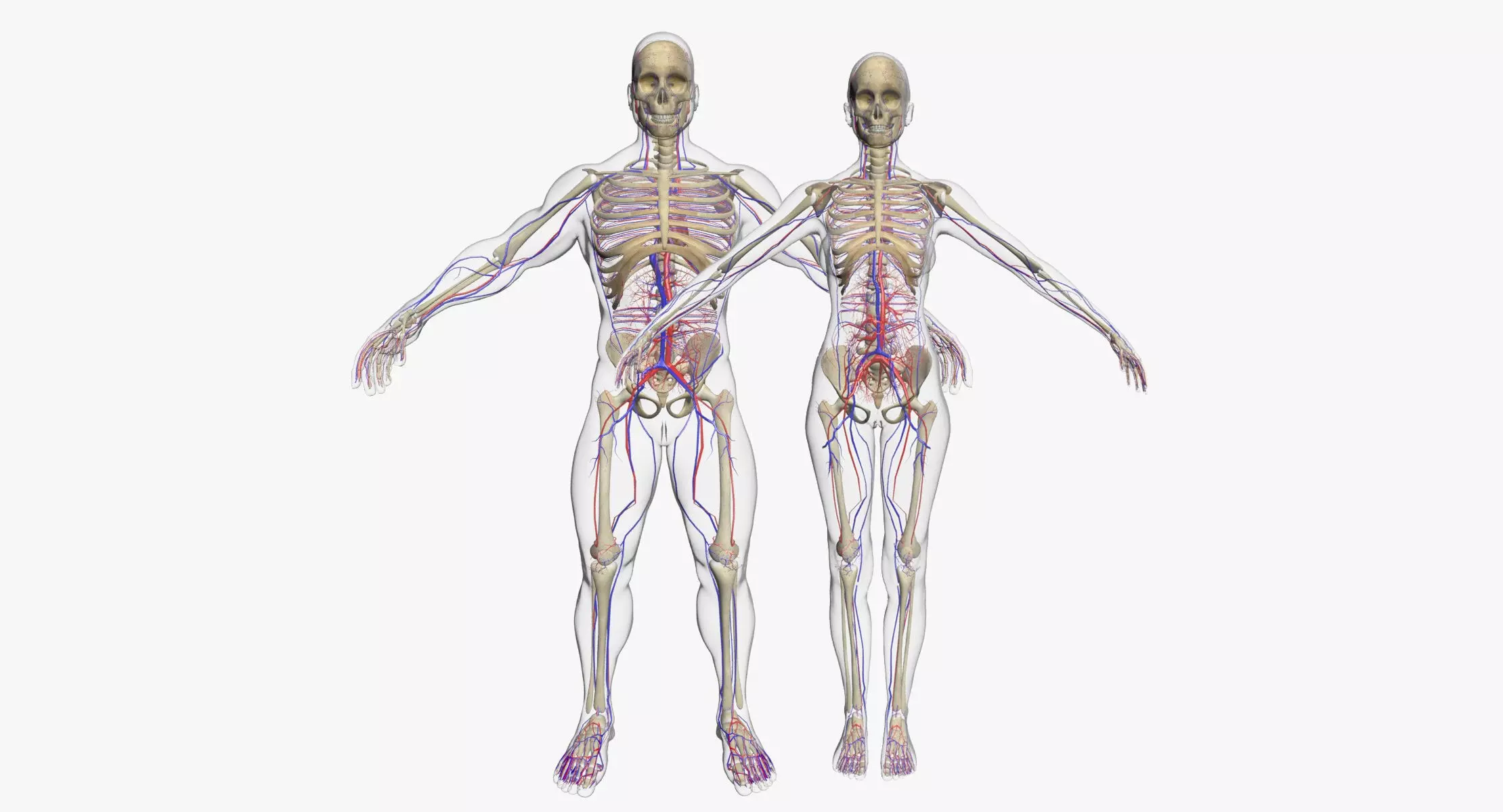 ==FEATURES==-Very detailed circulatory system including veins, arteries and heart.-X-Ray Shader for the Skin (Ready to render exactly as shown)-Each bone is select-able and named / grouped properly for easy organization-Real World Scale (male 6 feet 2 inches, 1.89 meters, 74.6 inches) (female 5 foot 10 inches)-Displacement map for extreme detail-Clean edge-loop based topology-Ready to Render-3D Studio Max file