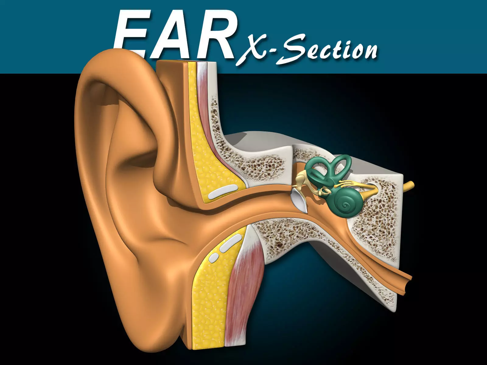 Ear X-SectionA cross sectional and anatomically accurate depiction of the human ear, complete with the organs of equilibrium.Because of it's uncluttered depiction and unobstructed internal organs, this model is perfect for educational and medical videos animations.