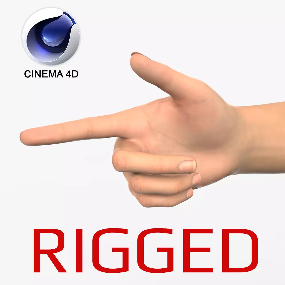 The hand model includes all major anatomical features, such as fingers, nails, knuckles, and wrist, and is rigged for easy manipulation and animation within Cinema 4D. The rig includes a full range of motion for each finger, allowing for realistic gestures and movements.