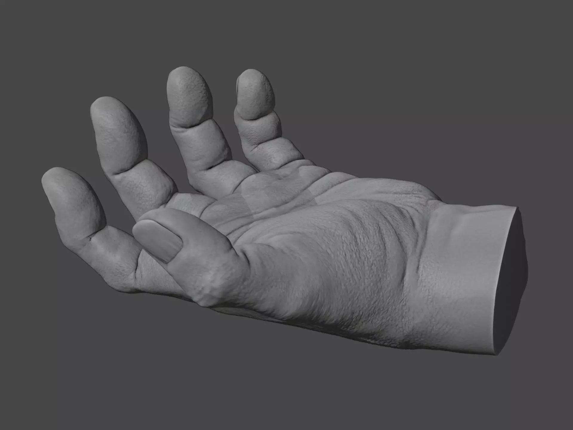 Rigged 3d hand. Made ib Blender. Rigged with bones. Inverse Kinematic IK is made. You can edit its pose. Has no textures. Is ready for your scenes. 596 759 vericales. 1 200 065 edges. 603 318 faces.