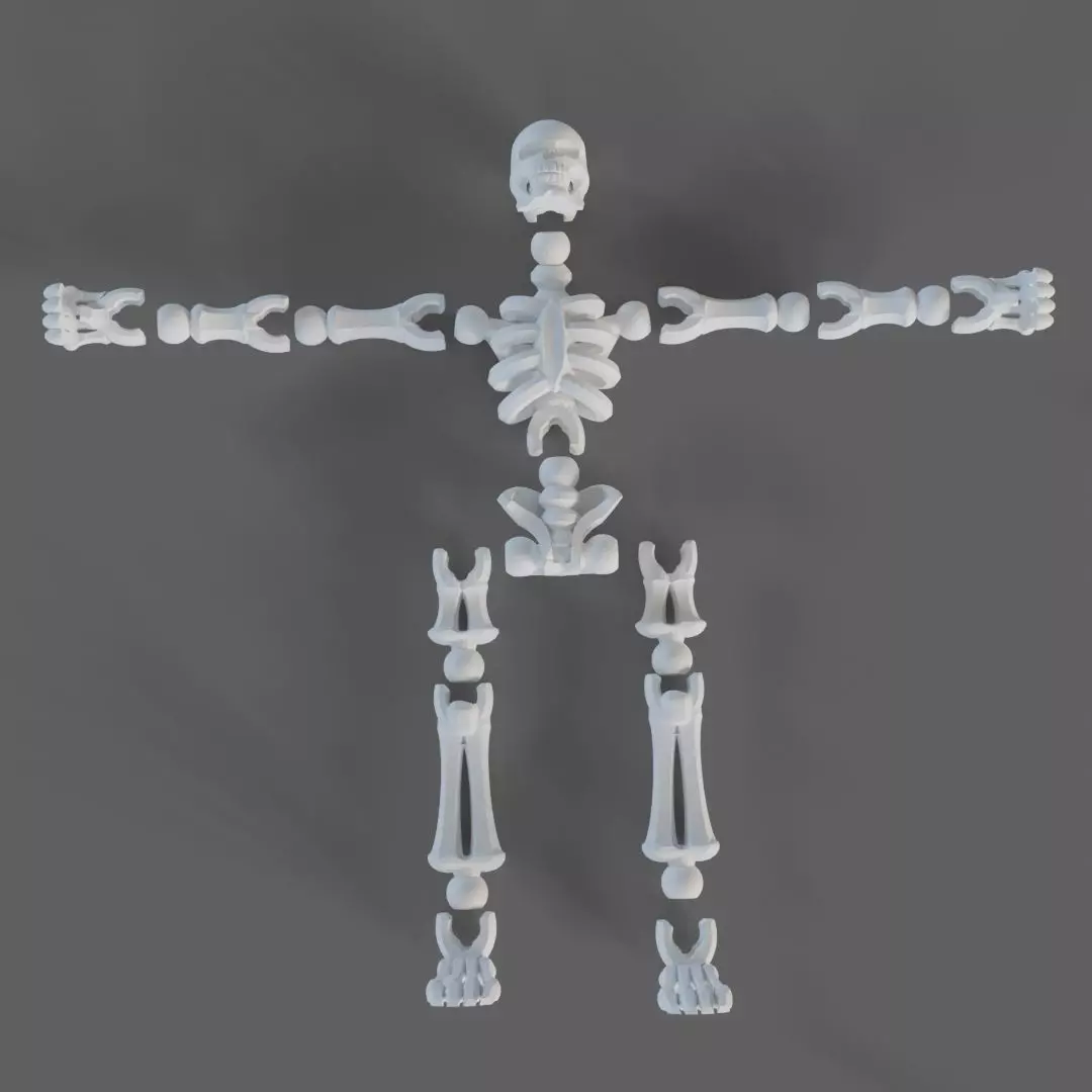 This simplified, stylized 3D model of a human skeleton features modular, geometric components that resemble robotic or toy-like anatomy. Designed and rendered in Blender, the skeleton is laid out in anatomical position with clean, abstract forms representing the skull, ribcage, spine, pelvis, arms, and legs. Ideal for educational use, design prototyping, stylized animation, or collectible 3D prints.Includes STL file for 3D printing.The STL file is provided for physical reproduction, but minor tweaks and adjustments are recommended before slicing:• Ensure watertight mesh and closed geometry• Add supports for overhangs (especially limbs and joints)• Adjust wall thickness for durability• Consider separating parts for articulated or poseable prints• Optimize orientation for print stabilityThis model is best suited for intermediate users familiar with slicing software and basic mesh editing.Features:• Formats: .blend, .fbx, .obj, .stl• Textures: Not included (stylized solid surface)• Topology: Clean low-poly mesh• UVs: Not unwrapped (not required for solid print)• Rigging: Not rigged• Printability: STL included; editing recommended for best results
