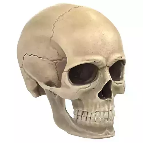 The model features detailed depictions of the human skull and mandible with realistic textures. It is designed to highlight the subtle nuances of bone structure. This high-quality 3D model, created using real photographs, will enhance the detail and realism of any visualization project. The model has a fully textured, highly detailed design that allows for close-up rendering.