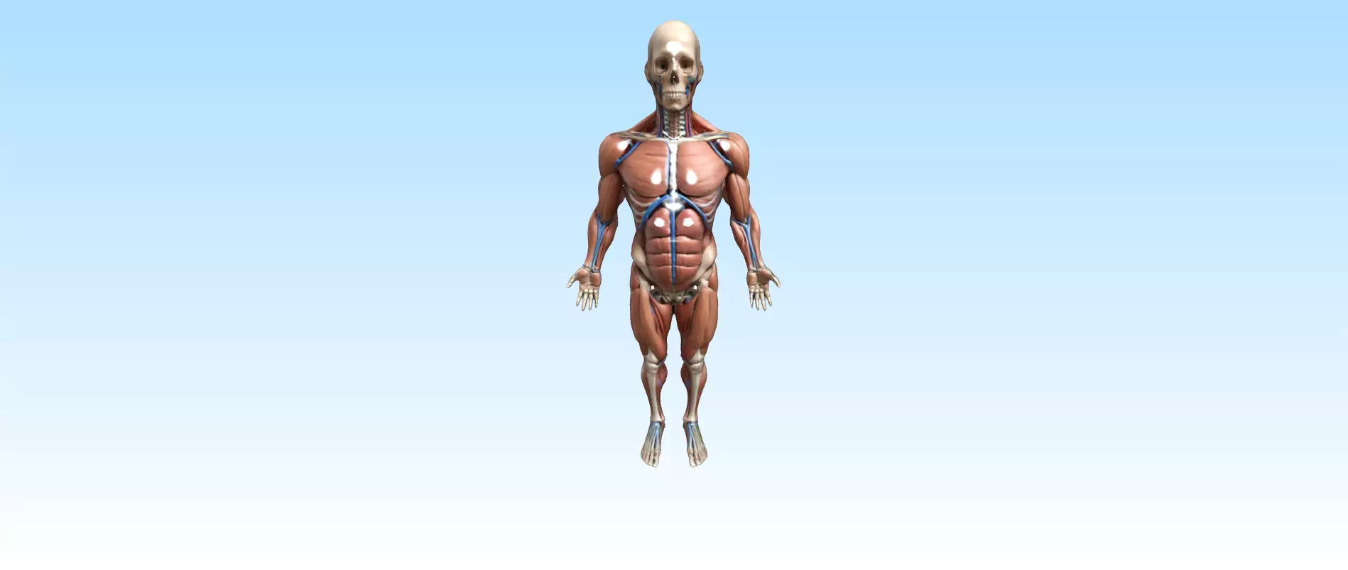 An anatomically accurate 3D model of the human body, featuring detailed musculature, skeletal structure, and internal organs. Designed for medical students, educators, and digital artists. Each component is individually labeled and optimized for easy learning and 3D printing applications.
