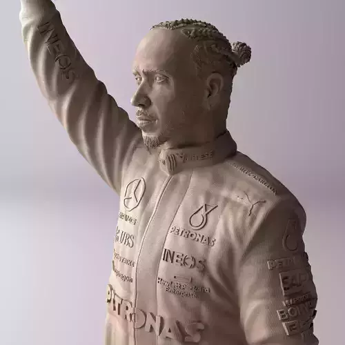 High-quality 3D printable premium statue inspired by Lewis Hamilton in his iconic raised fist pose, symbolizing victory, resilience, equality, and determination. This collectible figure captures one of the most powerful and recognizable gestures in modern Formula 1 history, reflecting Hamilton’s dominance on track and his impact beyond racing.