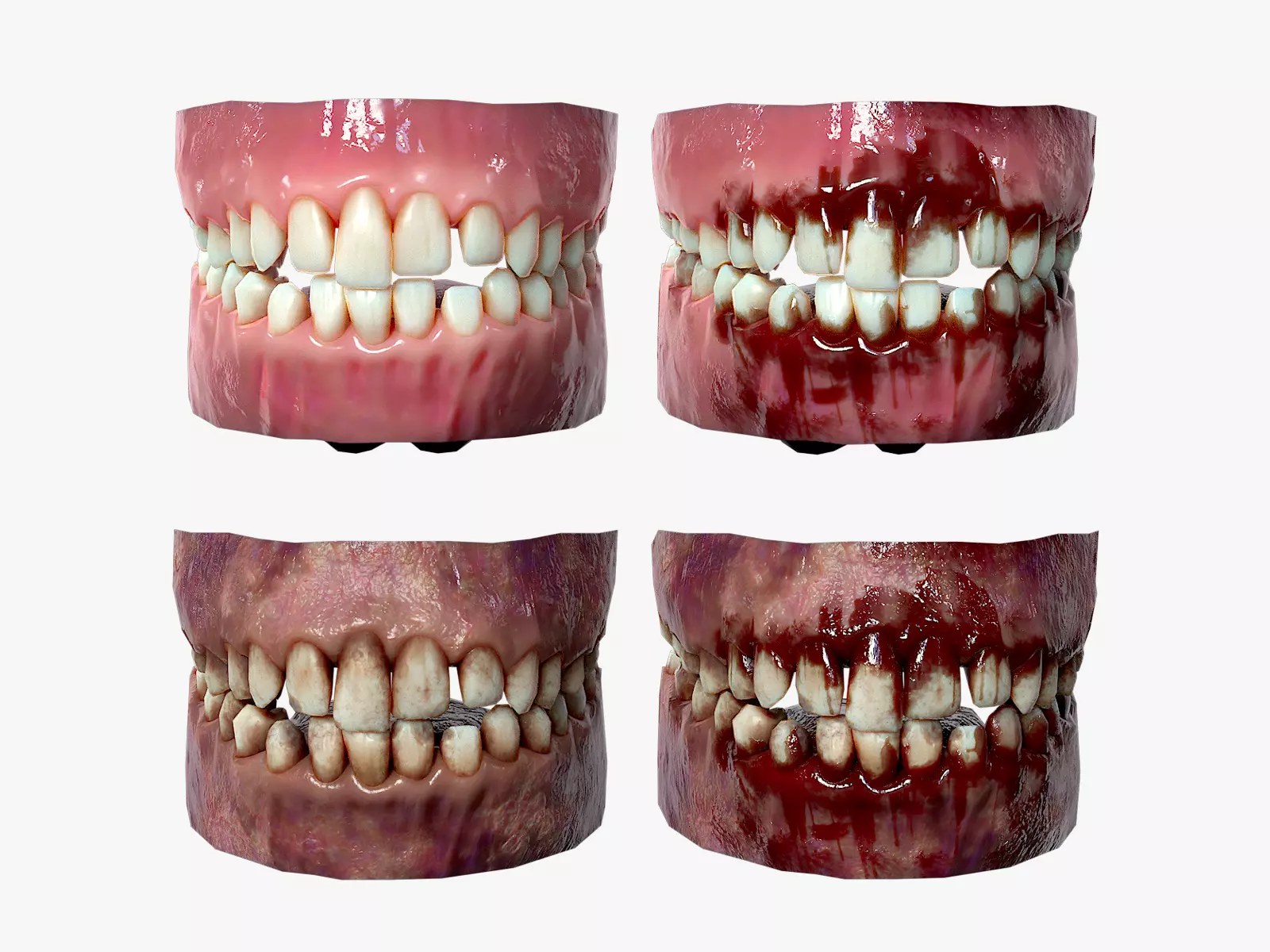 Lowpoly Gums Teeth and Tongue. Rotten and bloody.