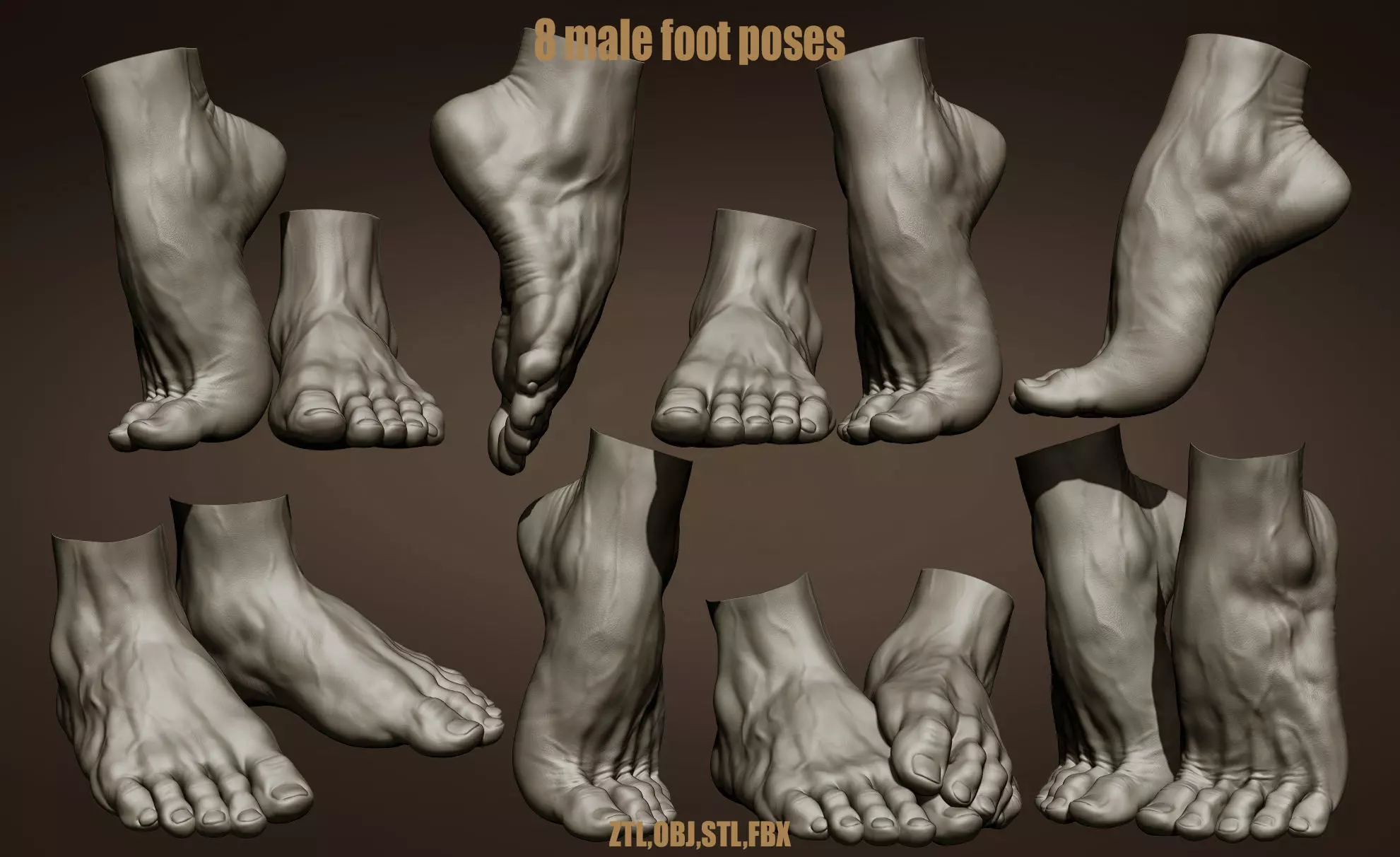 This is the collection of realistic male foot poses I did in Zbrush recently.