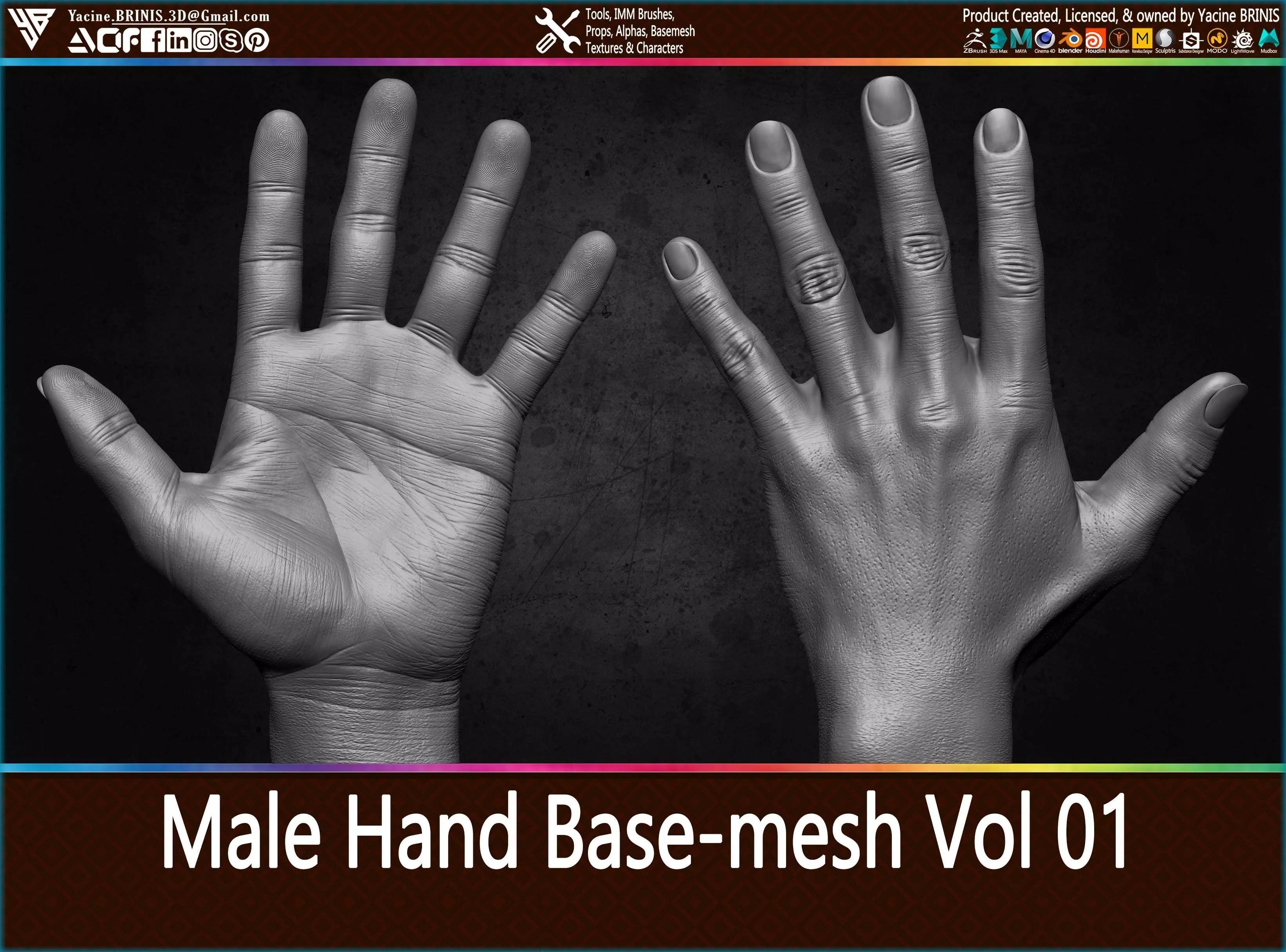 - 01-Male Hand Basemesh Vol 01 High Poly ZTL Files