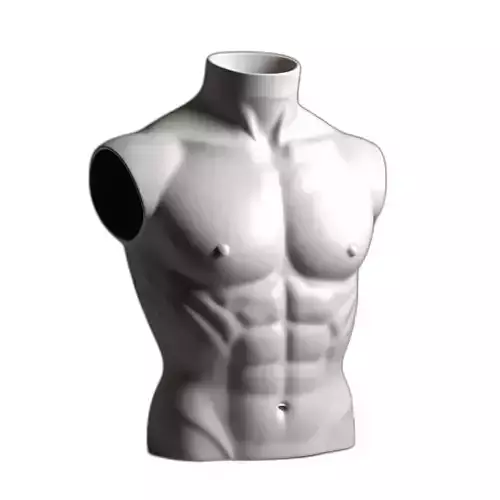 This highly detailed 3D model presents a muscular male torso, perfect for anatomical study, character base creation, or as a sophisticated mannequin. The sculpt accurately captures human musculature, including defined abdominal muscles, pectorals, and deltoids, making it an excellent reference for artists and animators. It is meticulously crafted, focusing on realistic proportions and intricate forms. This versatile model can be utilized across various creative projects, from foundational character modeling in game development and detailed sculpts for digital art to precise anatomical references for medical visualization or educational purposes. It is also ideally suited for high-quality architectural visualization scenes where human forms are needed, or as a display asset in virtual showrooms. Furthermore, its clean geometry makes it an excellent candidate for 3D printing, enabling the creation of physical anatomical models or artistic sculptures. The model is prepared to support a wide range of industry-standard file formats, including GLB, OBJ, STL, FBX, USD, DAE, ABC, and PLY, ensuring broad compatibility with most 3D software. While optimized for high-detail static renderings and digital sculpting workflows, its clean topology provides a strong foundation for retopologizing into a lower-poly version for real-time applications like AR/VR or game engines. Key features include its high level of anatomical accuracy, clean mesh, and readiness for subdivision. Though shown untextured, it provides an excellent base for PBR texturing workflows.