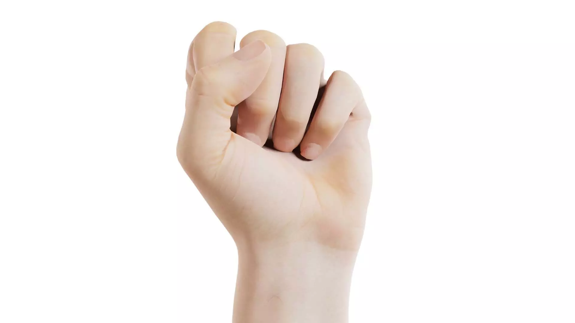 3D scanned model featuring a person's hand is holding up a fist. This model, male single hand 005, has been created using photogrammetry from a real world object.The raw scan data has been cleaned, retopologized and UV-unwrapped using Zbrush. The result is a low poly mesh with baked maps. The .obj and .mtl are configured so that maps will load automatically in the shader (tested in Blender). In addition, a Blender scene is provided with the model and shader already set up for rendering and export. Detailed information below: