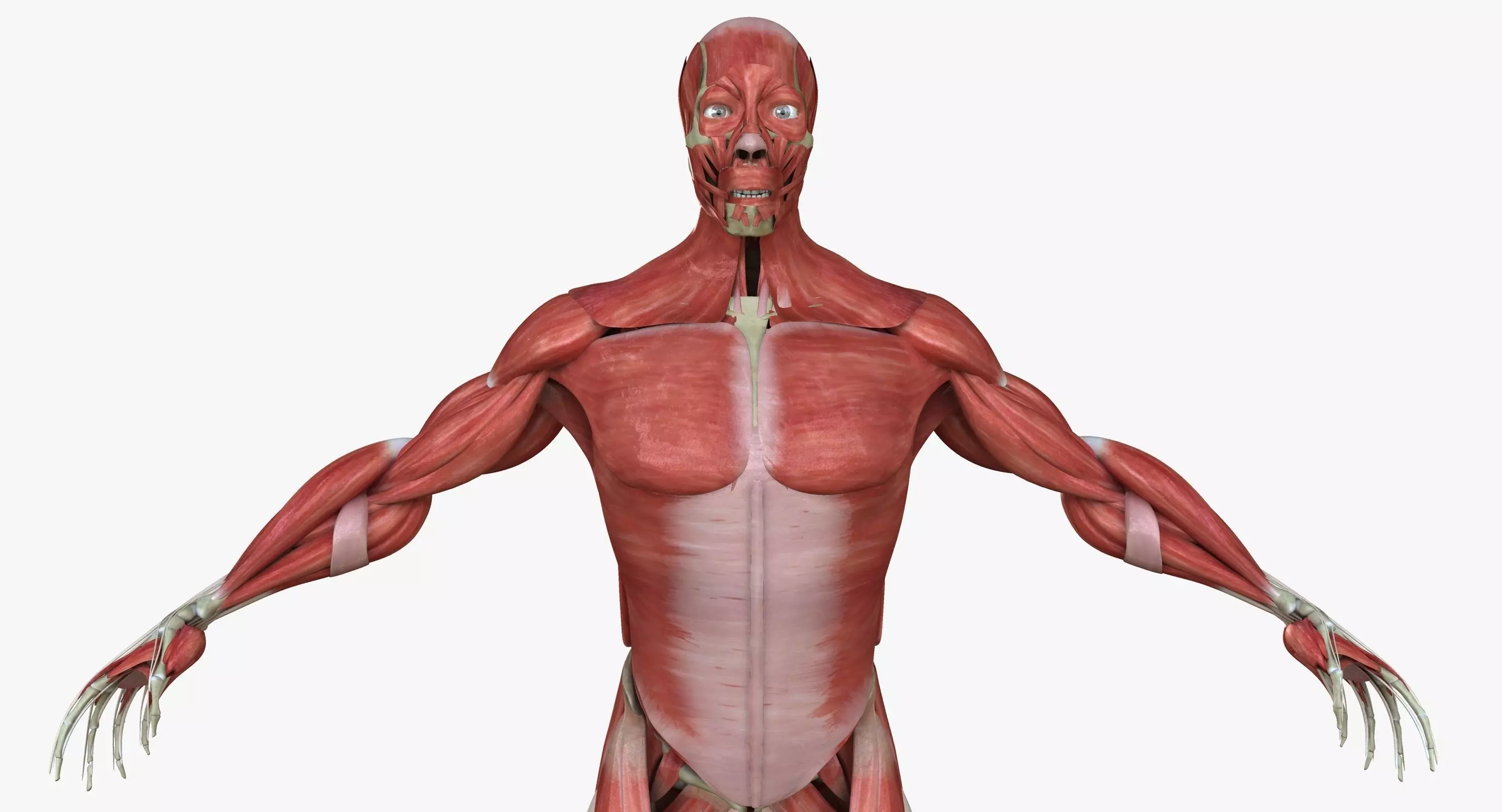 ==FEATURES==-Each Muscle and Bone is select-able and named / grouped properly for easy organization-Can Isolate any muscle, including deep tissue muscle and see the correct origin and insertion onto the underlying skeleton-x-Ray Body shader can be toggled on or off to see how the skin is positioned over the muscles and bones.-Native Maya File-Real World Scale (H:190cm, W: 190cm, D:37cm) (6.25 ft tall)-Realistic Textures-Displacement map for extreme detail-Clean edge-loop based topology (no n-gons, minimal triangles) -Light set up ready to Render (No post work has been done to any of the preview images)