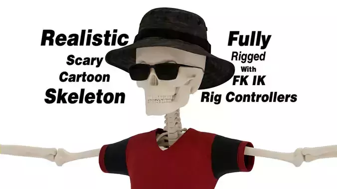 The Skeleton Cartoon Scary Model is a fully rigged 3D character, set up in Blender using Auto-Rig Pro. It’s rendered realistically with both Cycles and Eevee, giving you flexibility depending on your workflow.This model includes two accessories (a hat and glasses) and comes with a 360° counter-clockwise turntable animation. It’s real-world scale at about 1.46 meters, with subdivision level 1 applied to the skeleton and cap.