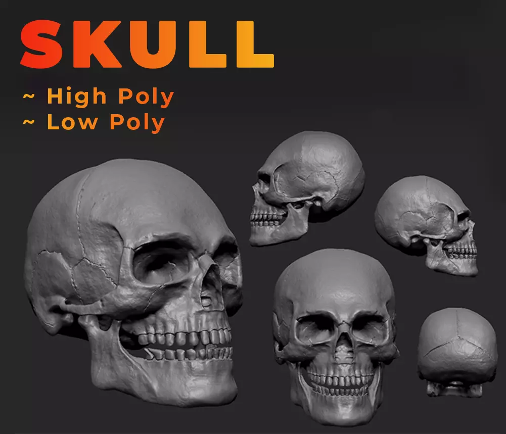 Hey folks, here is my skull model ready to be yours and can be used in production pipeline. The model is highly detailed and has 3 variants : High Poly , Low poly and Decimated (with details).I have provided FB, OBJ, STL , Blend and a ZPR file attached my this product. This can be used a quick conecpt, VDM, IMM, asset , etc for your project.