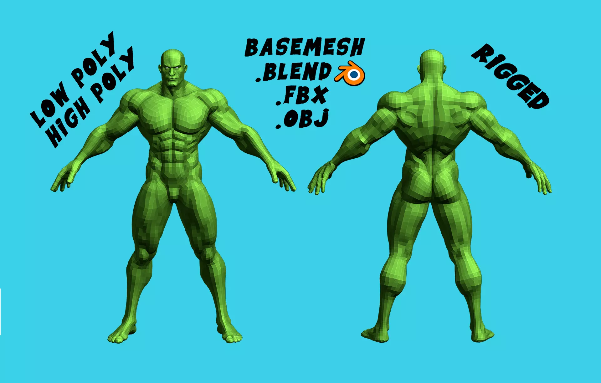 There are .rar files with low-poly bese mesh (OBJ, FBX), Blender file and high-poly (OBJ, FBX)