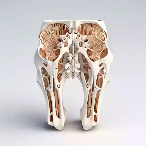 This 3D model presents a stylized robotic pelvis, ideal for science fiction projects, character design, or anatomical studies. It features an intricate, biomechanical design with internal structures and supports, giving it a futuristic and organic feel. Suitable for use in game development, AR/VR experiences, 3D printing, or as a striking element in digital art. The model is available in multiple formats, including FBX, OBJ, STL, and GLB, ensuring compatibility with various software. It is optimized for both real-time applications and high-quality renders. Key features include clean topology, detailed internal structures, and a visually appealing aesthetic. The model is UV unwrapped and ready for texturing, allowing for easy customization and integration into your projects. Whether you are building a futuristic robot, creating a unique character, or exploring biomechanical designs, this robotic pelvis offers a compelling and versatile asset.