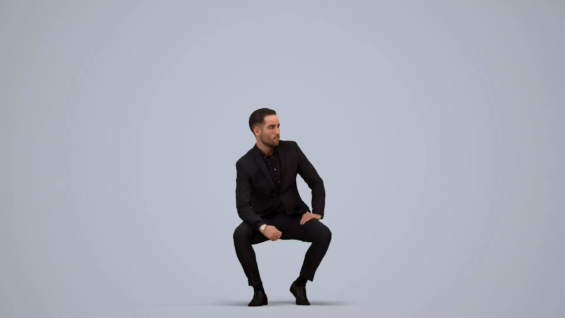 a man in a suit sitting on a cube