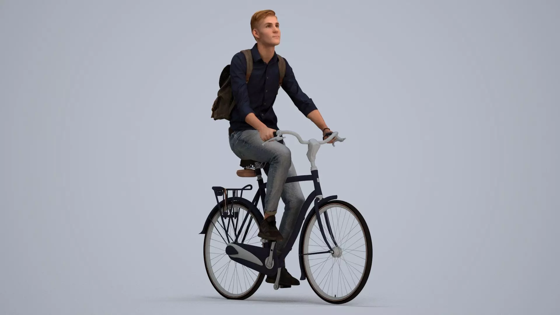 a man riding a bike with a backpack on the back