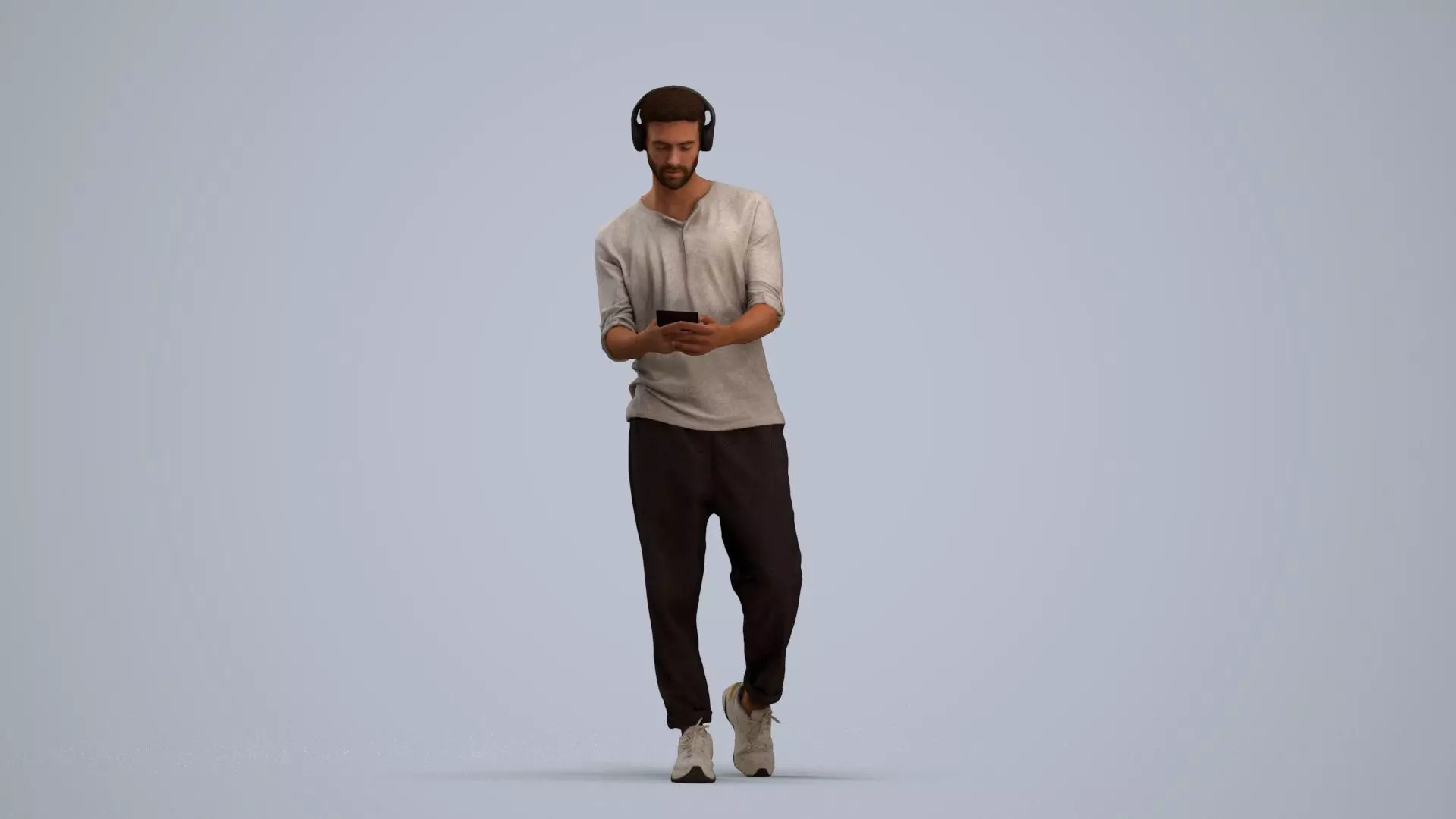 a man with headphones in front of a phone