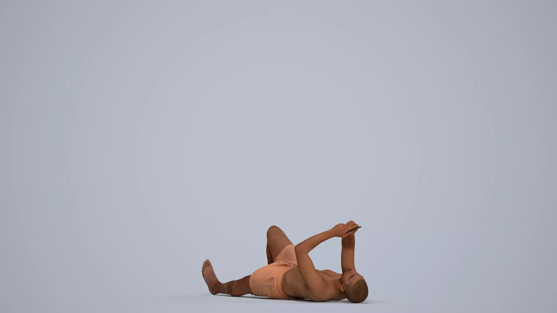 a man laying on the ground with her legs crossed using his phone at the beach or pool