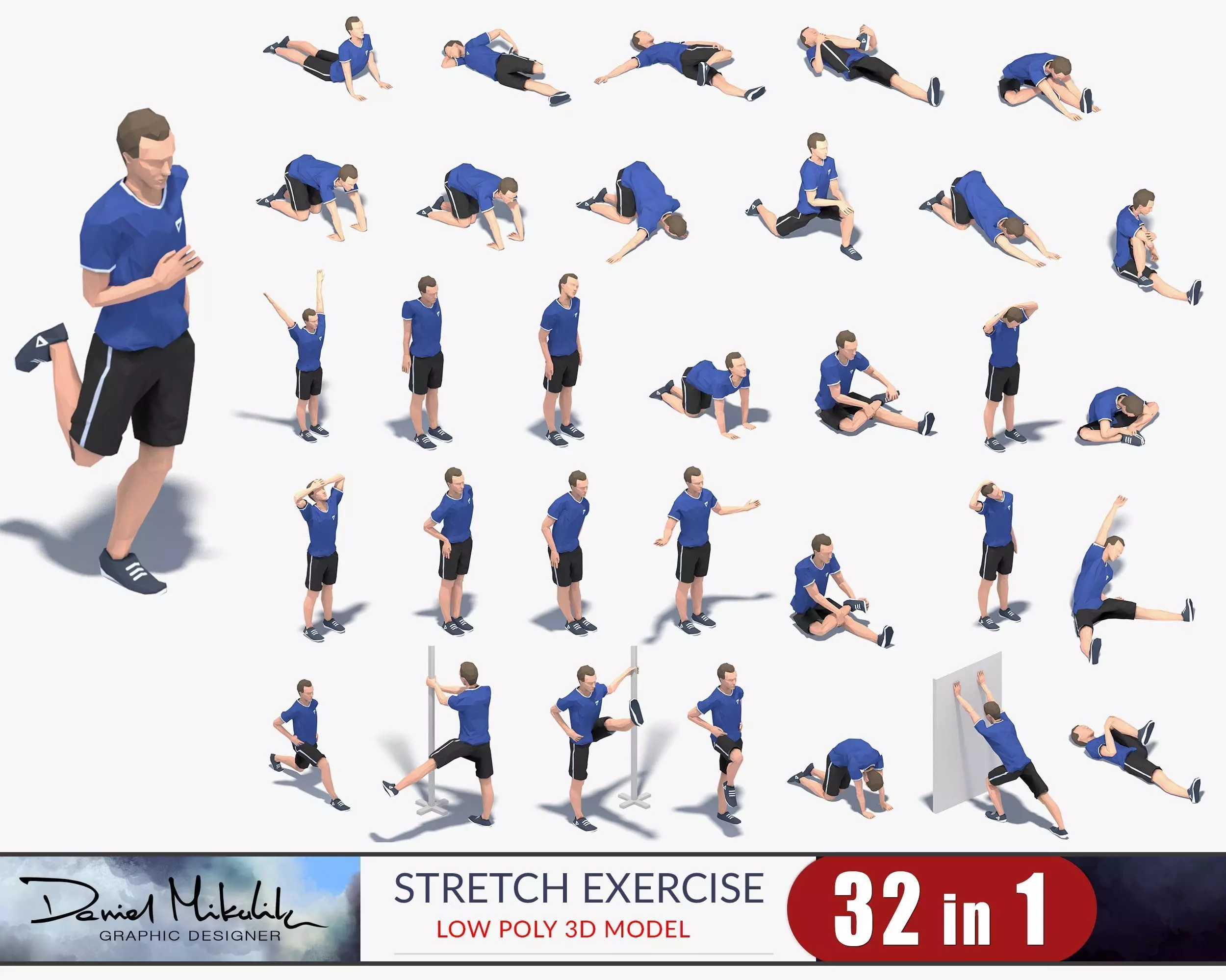 32 Stretch Animation 3d model Bundle Low-poly 3D model