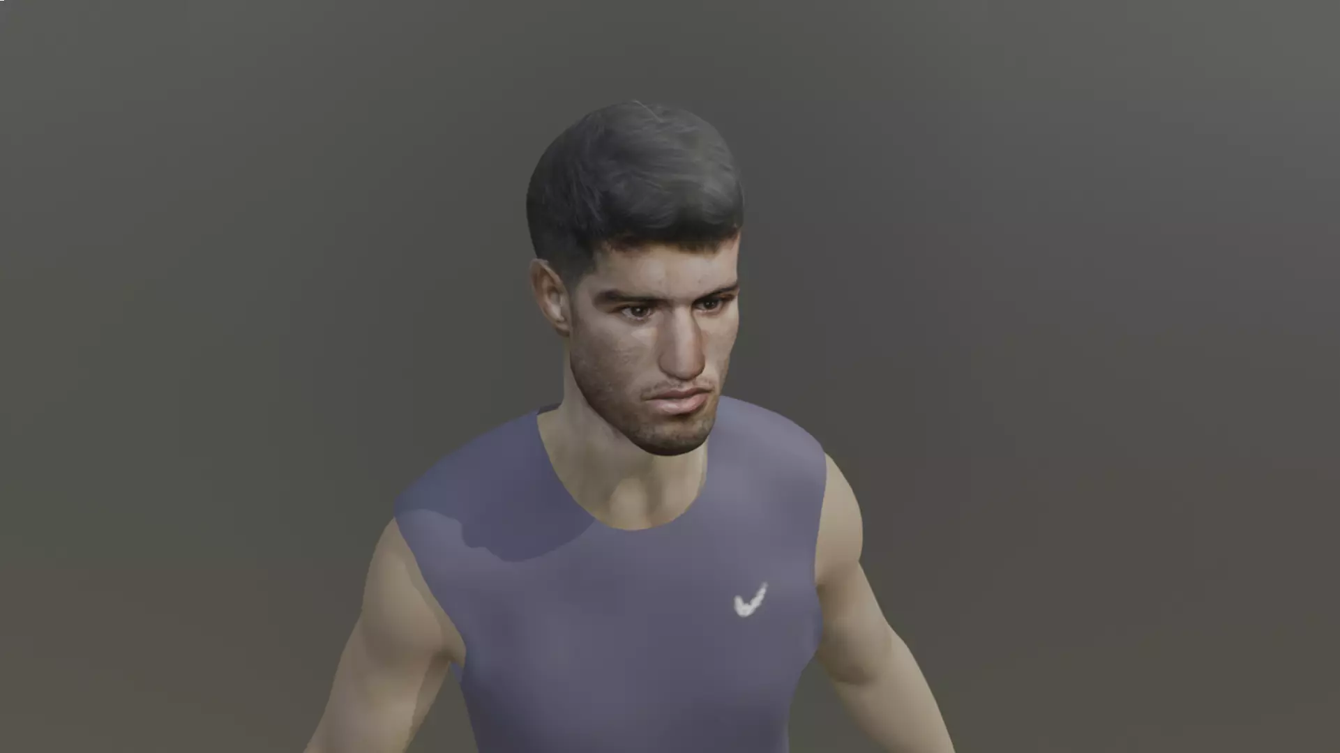 Introducing a realistically sculpted 3D model of a professional tennis player in the classic A-pose, designed and rendered using Blender. This neutral stance is ideal for rigging and animation pipelines, making it the perfect starting point for character integration in games, simulations, cinematic projects, or VR environments.