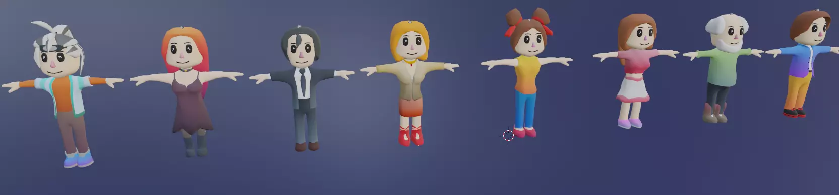 Meet Cutesiez Family :Amy,Bob,Eve,Jess,Joanne,John,Matt and Zack. They are rigged in mixamo ready to emerge in your game in T-Pose.4 male 4 female models are total of 50k polygons.With an avarage of 6k poly only per model.