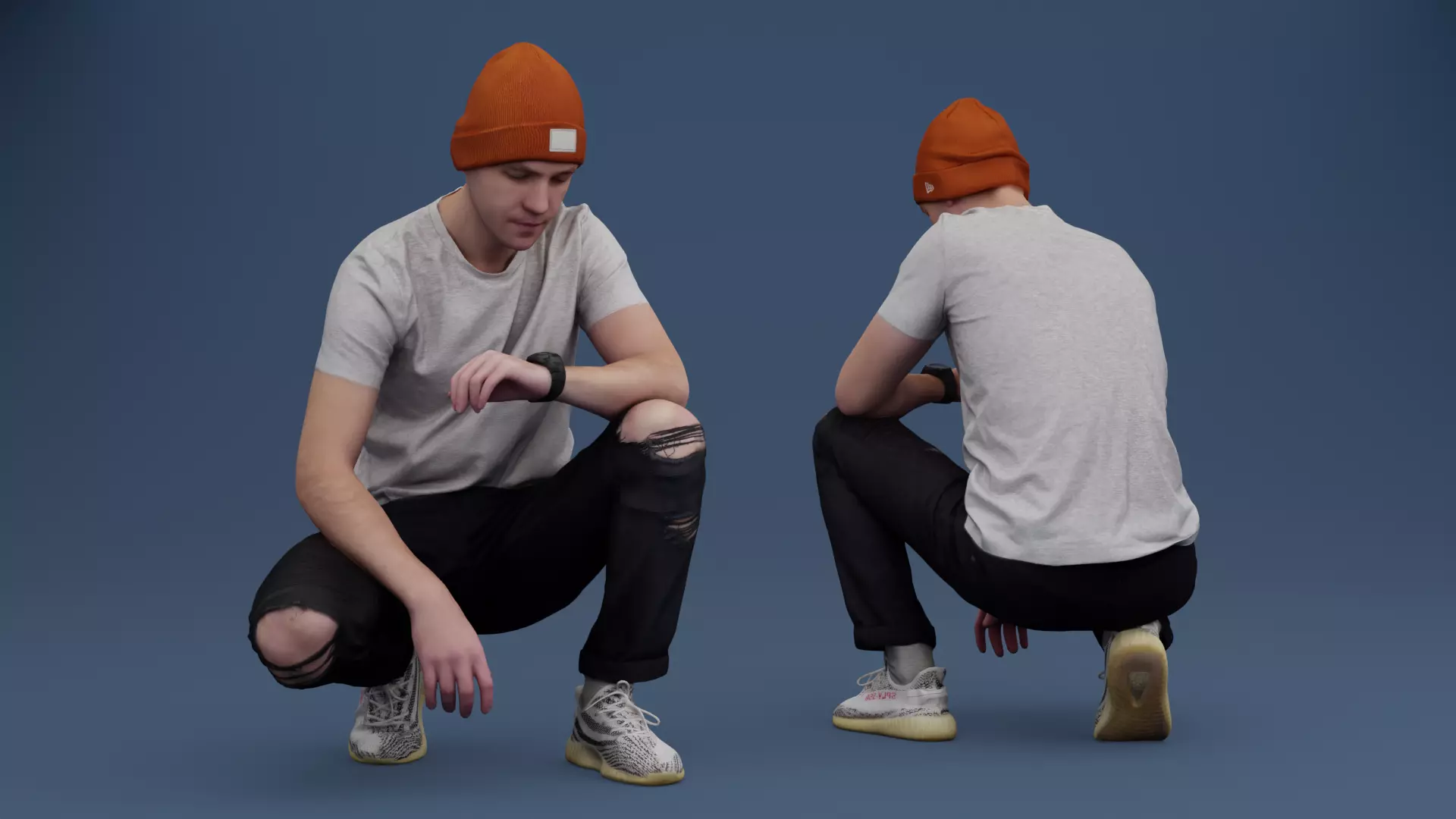 A Guy Squatting Checks The Time 3D model