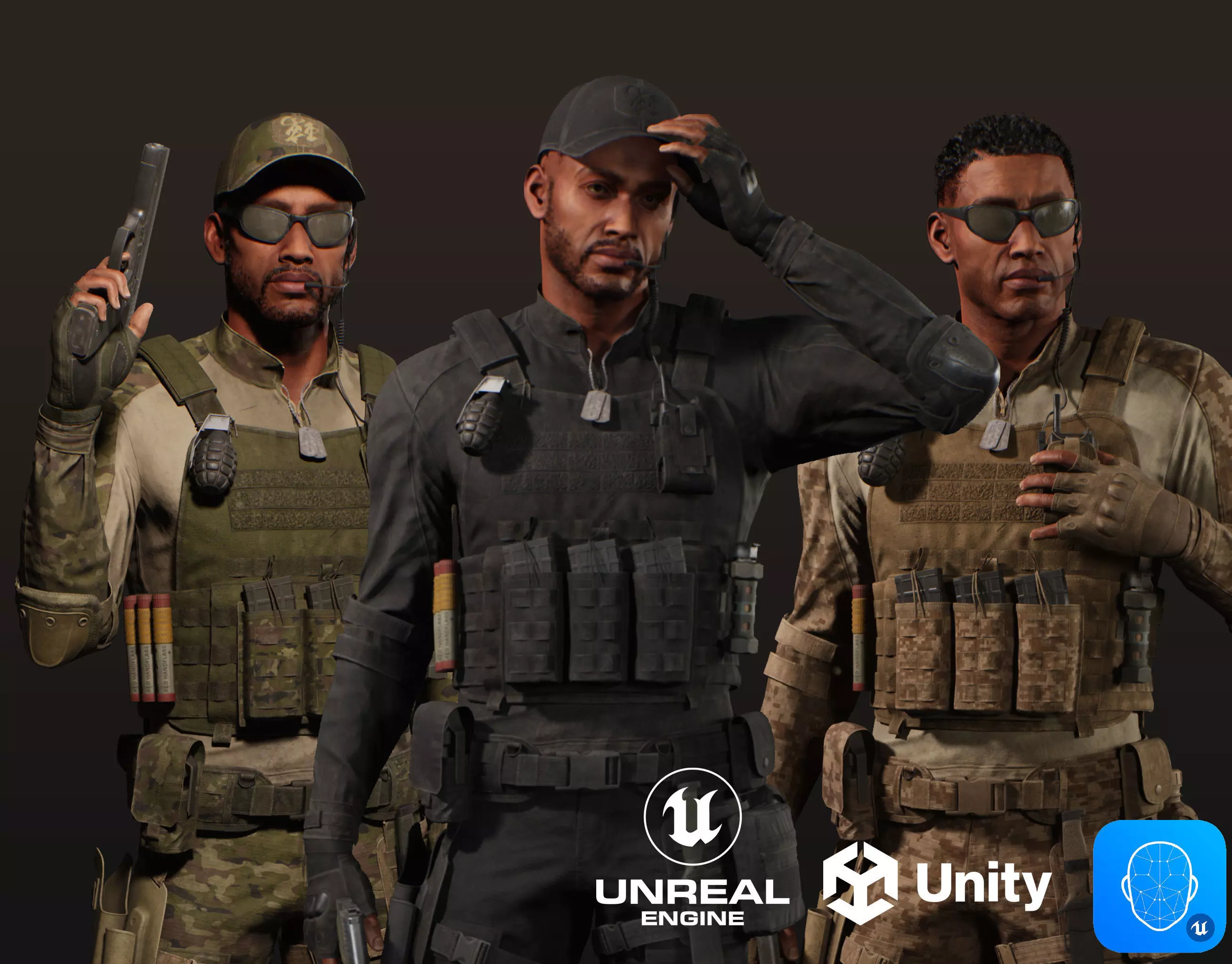 A lot of work has been put into this character package - we have implemented an exceptional number of nice features that you will surely enjoy! Lots of skins, amazing modularity, corrective blendshapes to simulate muscles, several body types (male and female), the ability to exchange clothes between characters, a bunch of accessories and weapons, a demo scene created from scratch with a lot of props for your game, cinematic scene, Control Rig, etc. …we’ll tell you more below :) As always, we are happy to invite you to our Discord channel - there we answer questions and help in working with models. Link: https://discord.gg/Dfh9yqR4tg