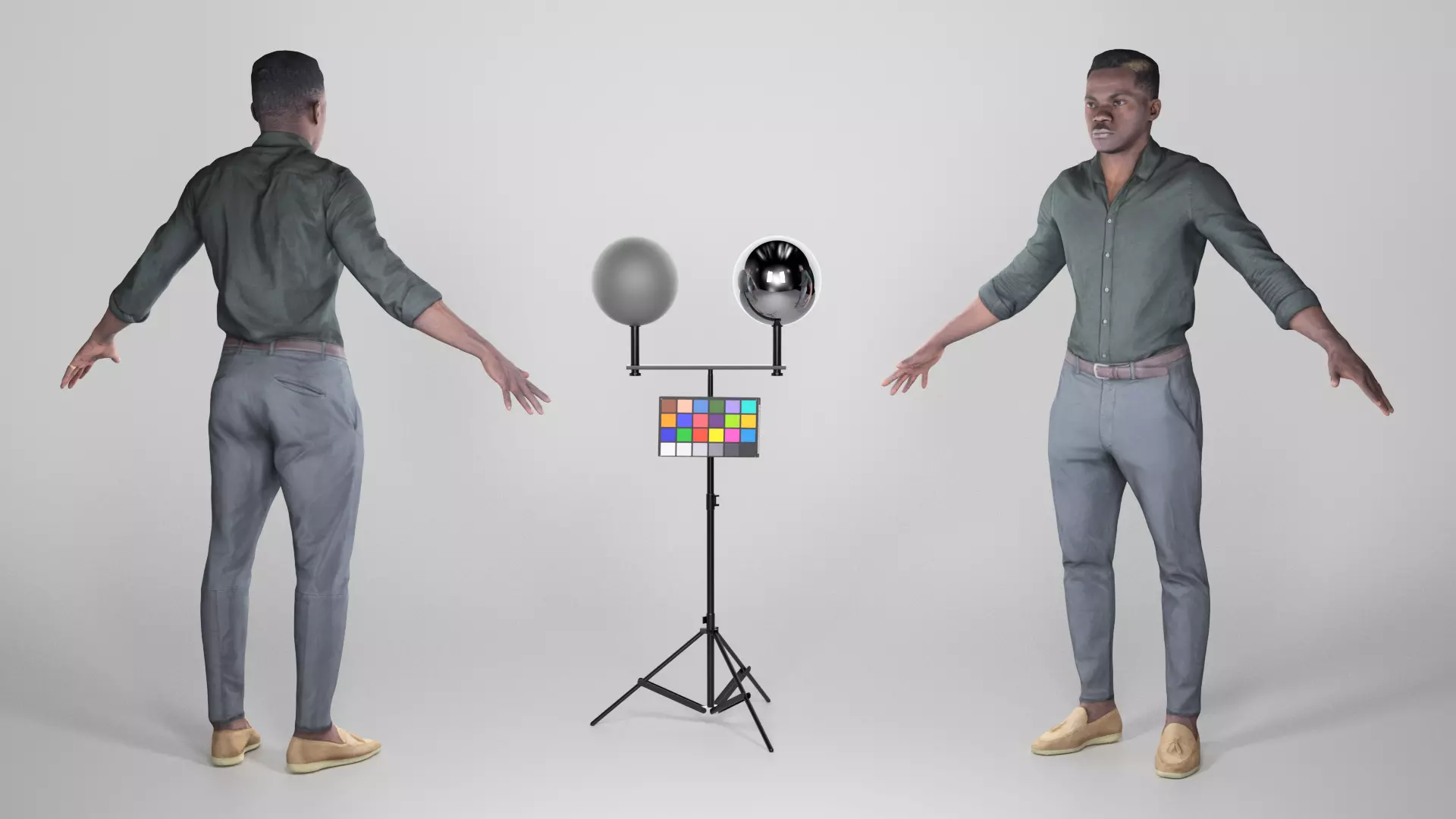 This is a true human size and detailed model of a young handsome man of African appearance dressed in business style. The model is captured in the A-pose with mesh ready for rigging and animation in all most usable 3d software.