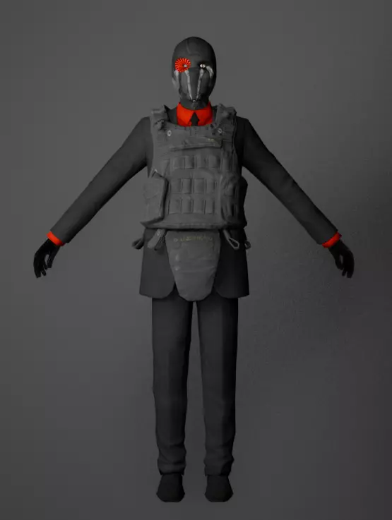 a male character with kevlar in black suit and plate carrier wearing mask. his right eye is artificial.rigged in blender to auto rig proalso rigged in ue5 manny so it works in ue524k tris