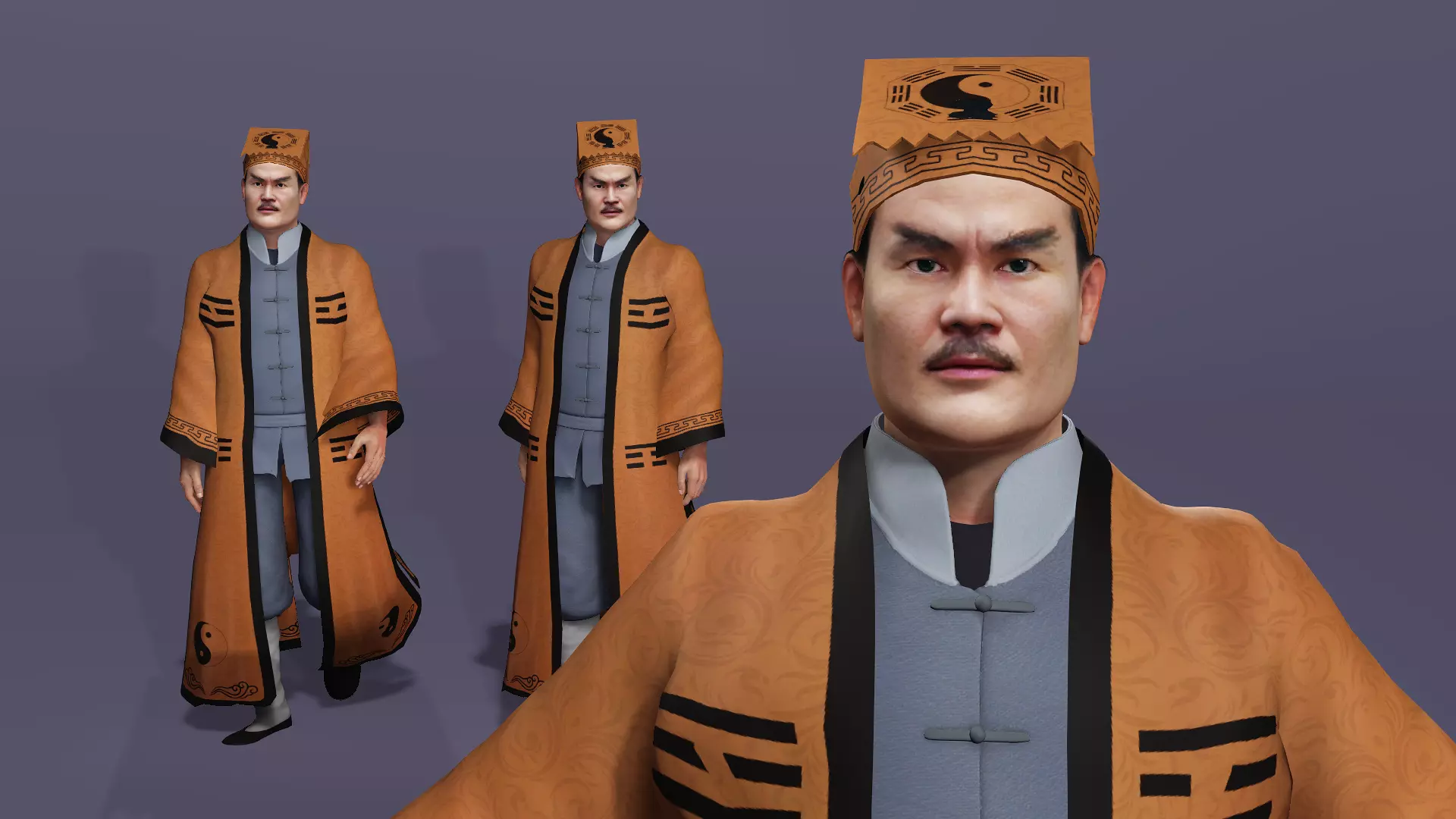 Realistic Male 3D Model, the character is Ancient Chinese Taoist exorcist.