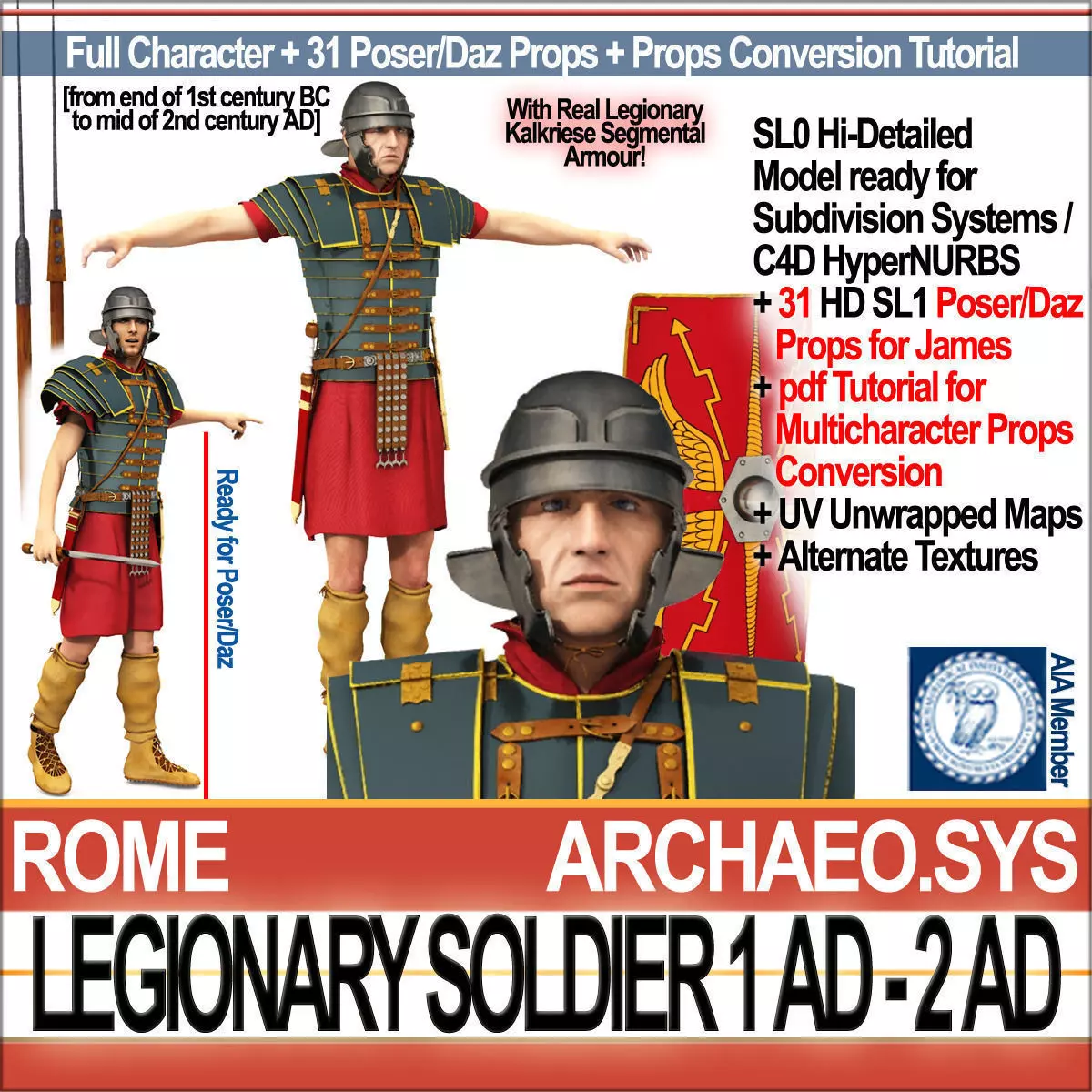 Ancient Roman Legionary Soldier 1st-2nd century AD, Character with 31 Props and Props Set for Poser/Daz. Faithful Reconstruction. C4D, 3DS, OBJ, Poser/Daz, VUE6to12!___________________________________________Ancient Roman Legionary Soldier 1st-2nd century AD