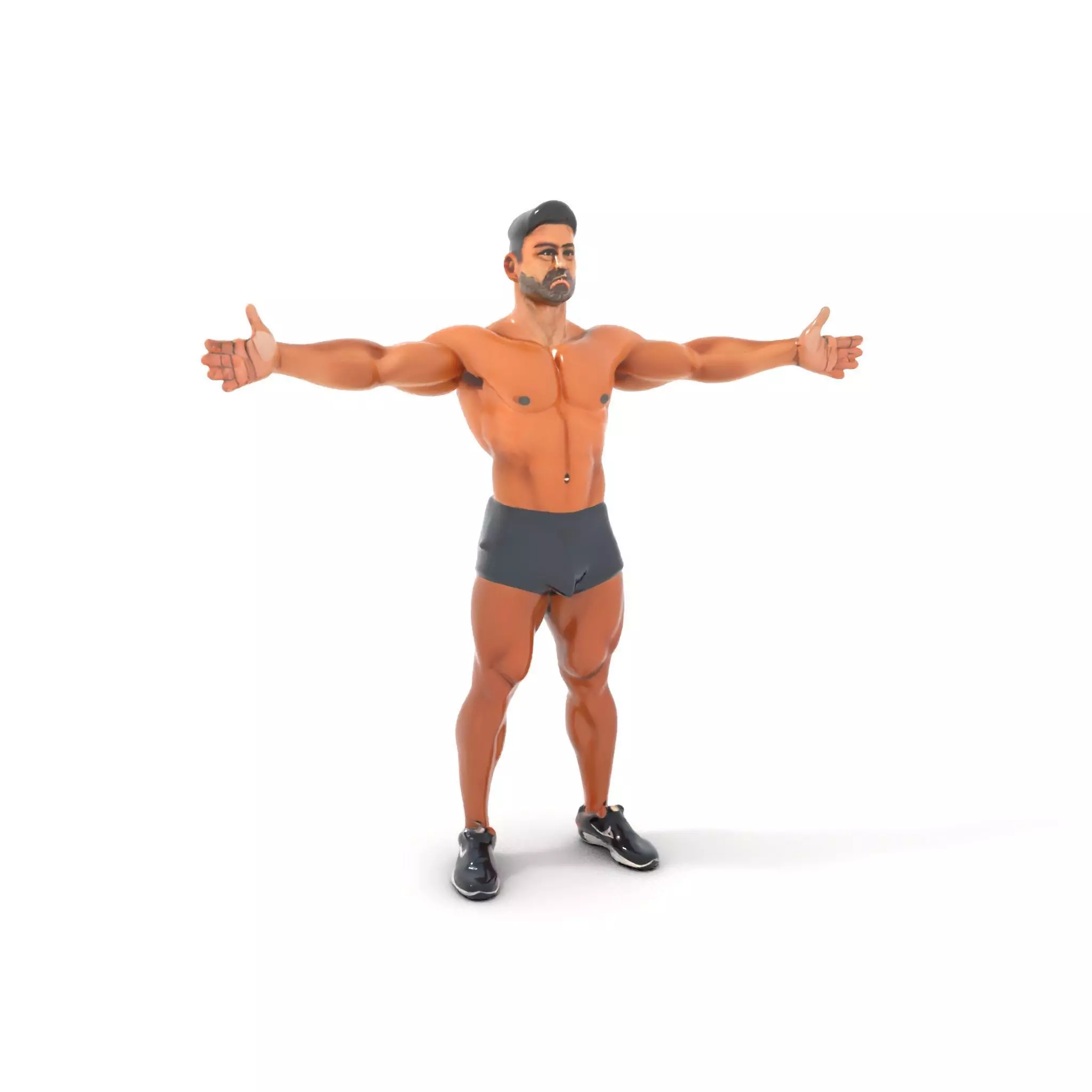 This Athletic Male Character Model Pack offers detailed and realistic anatomy suitable for games, animations, and simulations. Each model has three levels of detail: low-poly (1000 triangles for mobile), middle-poly (10,000 triangles for environment), and high-poly (100,000 triangles), which allows for the use of this model in production rendering (such as 3ds Max, Maya, Cinema 4D, Blender, Vray/Corona/Cycles and all other), game engines (Unity and Unreal compatible), and interactive presentations, providing a choice of detail based on the LOD System principle. Perfect for fitness apps, virtual reality training simulations, or character animation. The model's textures are PBR, Diffuse, NormalMap, and reflection/roughness/metallic, which are suitable for any modern rendering engine. Accurately unwrapped with no overlapping UVs. All textures are 4096x4096 in size. The first image is the reference used for creating the 3D model. It is important to carefully evaluate the quality of the model by examining the preview images that display the topology and polygonal mesh. These previews (WIRE and WEB 3D Preview) clearly demonstrate how accurately the model matches the original reference and how well the geometry has been executed. If you like this model, please leave a comment or like.