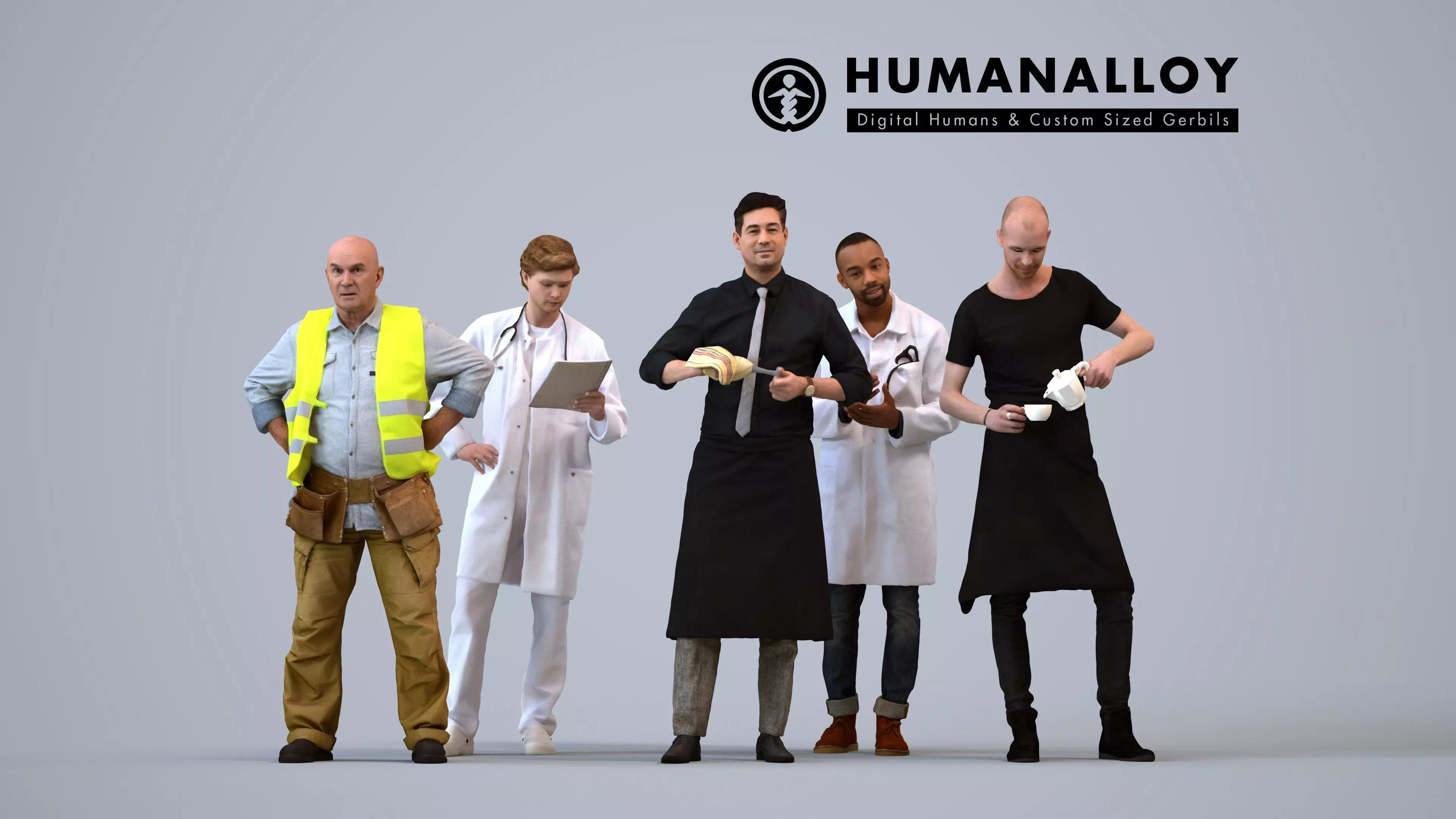 (~40k triangles, ~20k vertices per person) + 2k jpg color texture.