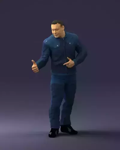 Add a friendly and expressive everyday character to your scenes with this full body male 3D character, created using 3D scanning technology to capture natural proportions, believable anatomy, and authentic clothing folds. The character is wearing a casual jacket and pants set and features a dynamic thumbs up gesture, making him perfect for positive lifestyle scenes, service scenes, and modern storytelling moments.