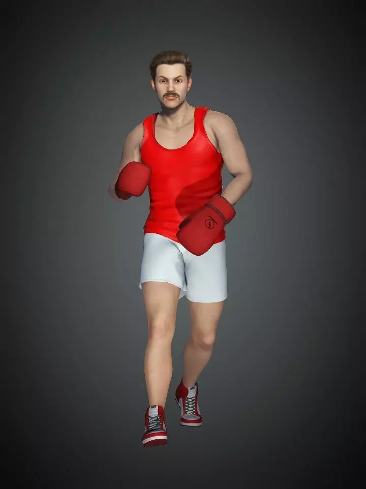 Boxer human model fbxfully regged human charachter boxer with cloth red T-shart,shorts high sneakers and gloves,